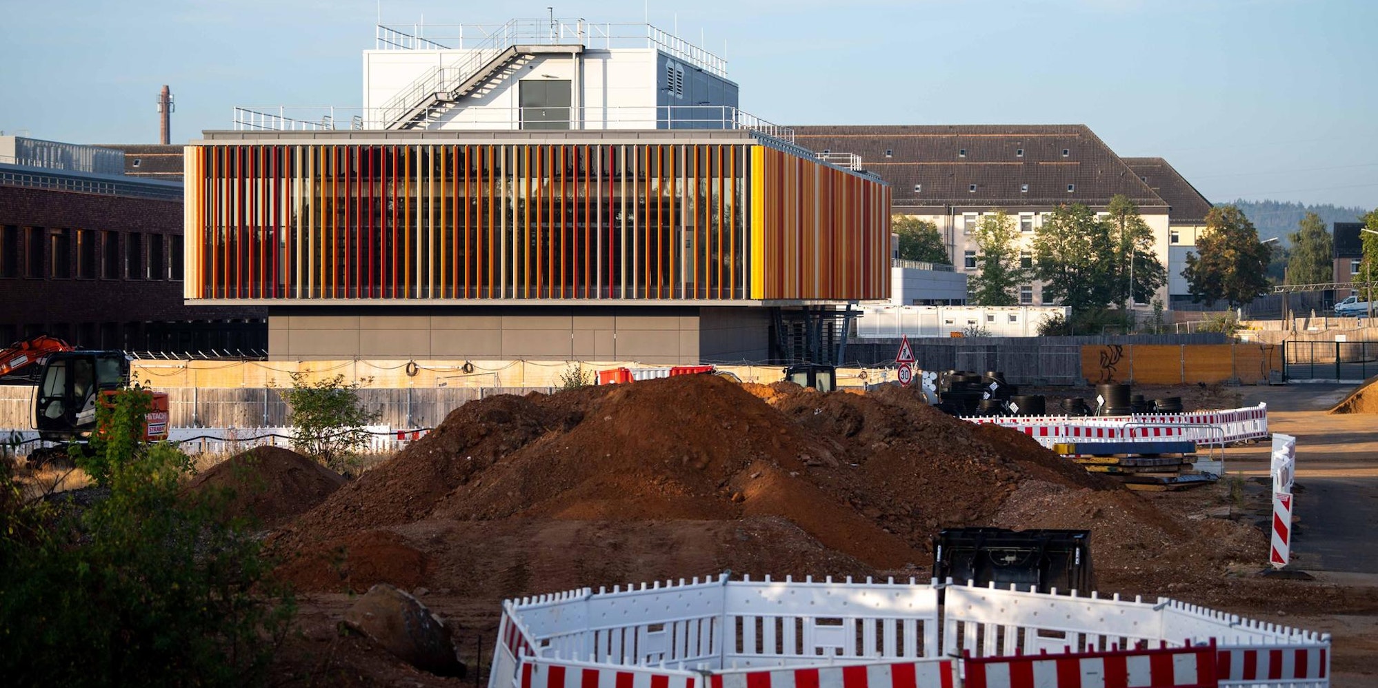 Der Neubau des Versorgungszentrums in Euskirchen ist aber nicht der einzige. So befindet sich die Fachinformationsstelle der Bundeswehr in der Übergabephase. Das markante Gebäude mit den bunten Lamellen an der Fassade ist die künftige Bibliothek der Soldaten.