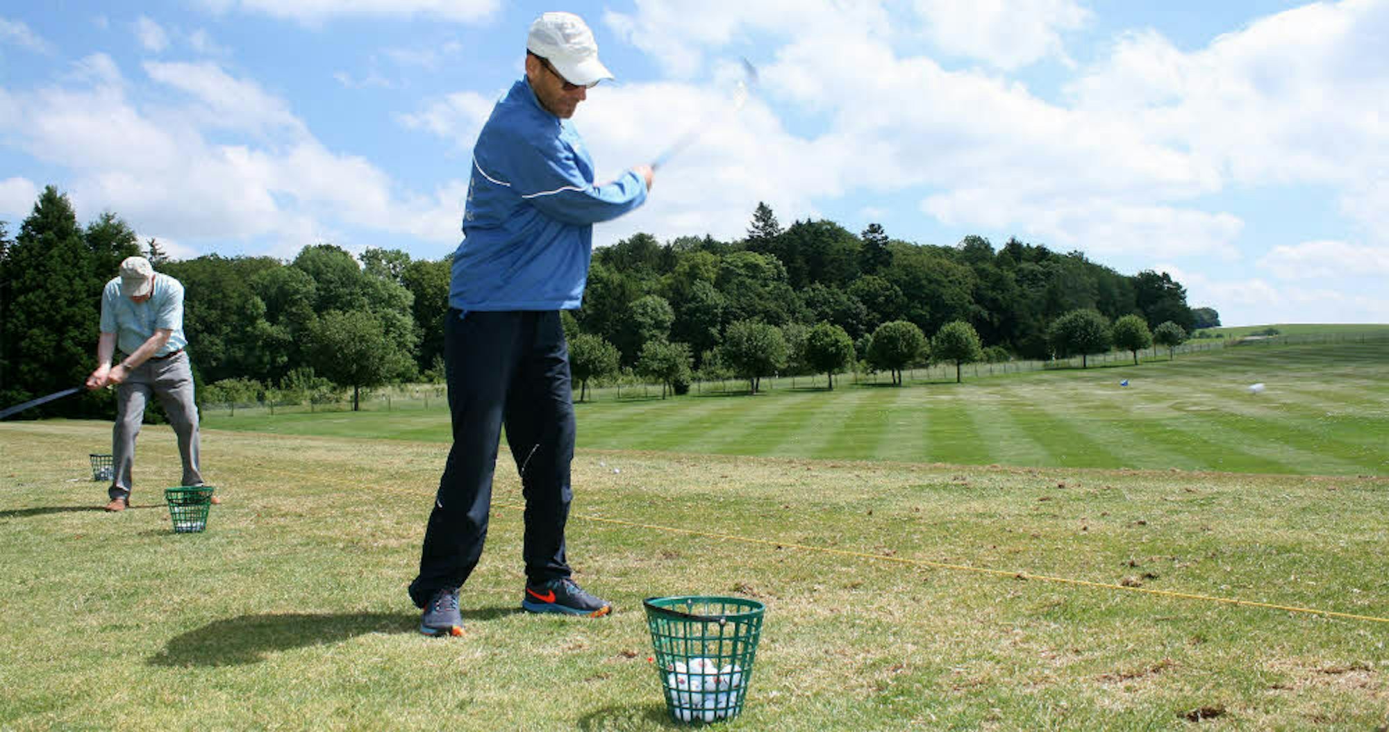 Einfach mal sauber den Ball treffen: Richard Luxem (re.) und Dietrich Ley auf der Driving Range.