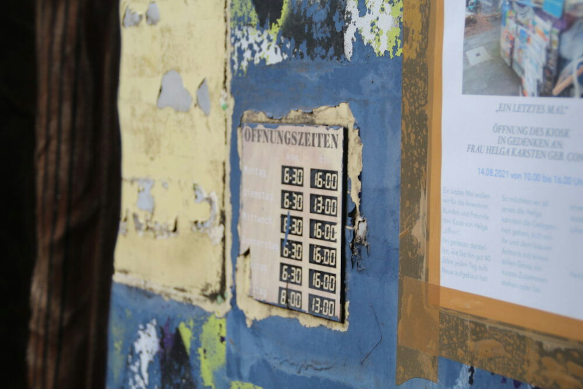 1984 kaufte Helga Karsten das Büdchen der Vorbesitzerin ab. Sie öffnete es bis zum Mai 2021 fast täglich. Karsten soll eine soziale, interessierte und belesene Frau gewesen sein, erzählen die Anwohner. Oft habe sie im Kiosk gelesen oder geraucht – dafür sei sie aber vor die Türe gegangen, berichten die Anwohner weiter.