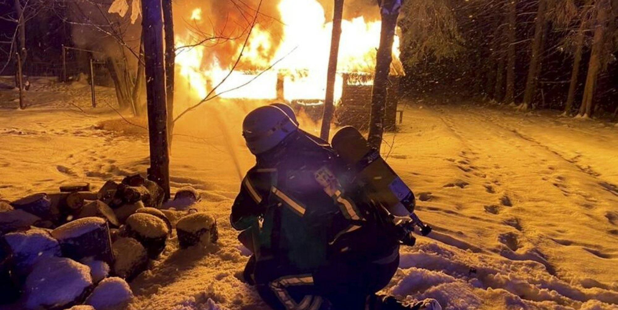 Hellenthal – Eine Mitarbeiterin, die dort gelegentlich übernachtet, wurde am Dienstag gegen 22 Uhr durch das laute Knistern von Flammen darauf aufmerksam, dass eine Blockhütte im Bereich des Betriebshofes des Hellenthaler Wildfreigeheges in Brand geraten war.