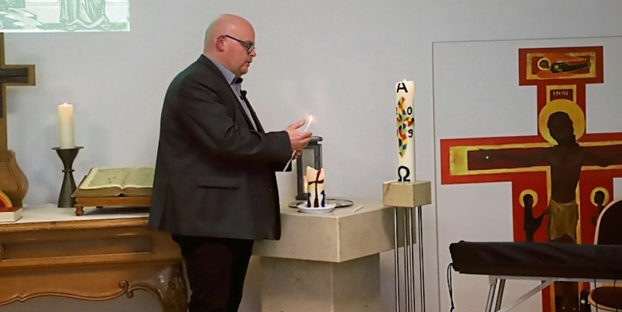 Auch im improvisierten Gottesdienst-Studio sind brennende Kerzen ein Muss.