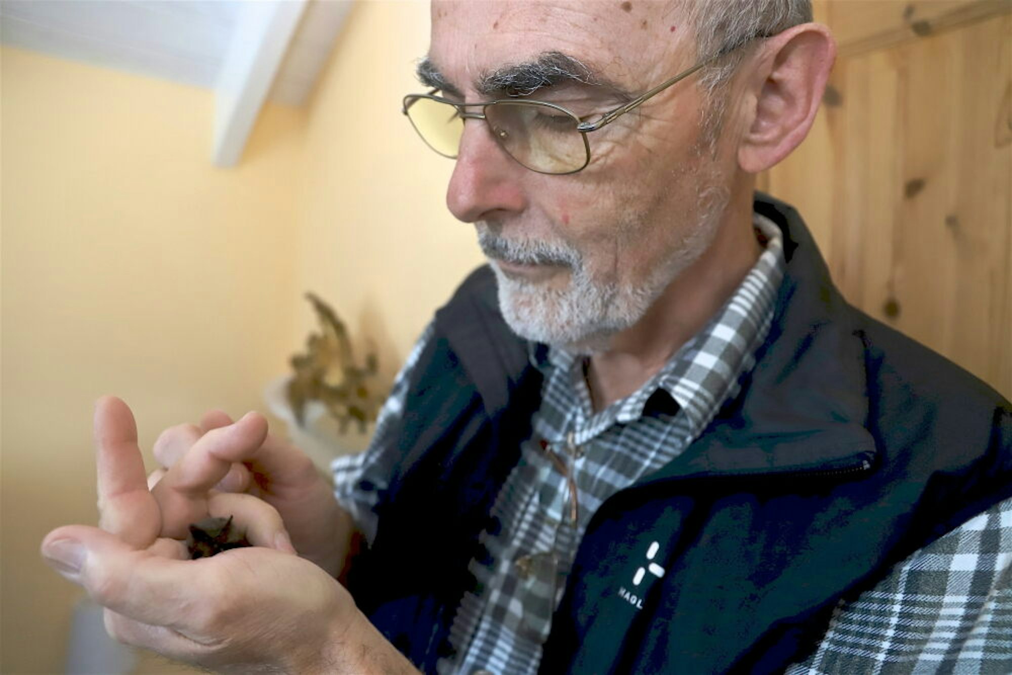 Kapitän Nemo, eine winzige Zwergfledermaus, hält Alfred Glener vorsichtig in seinen Händen.