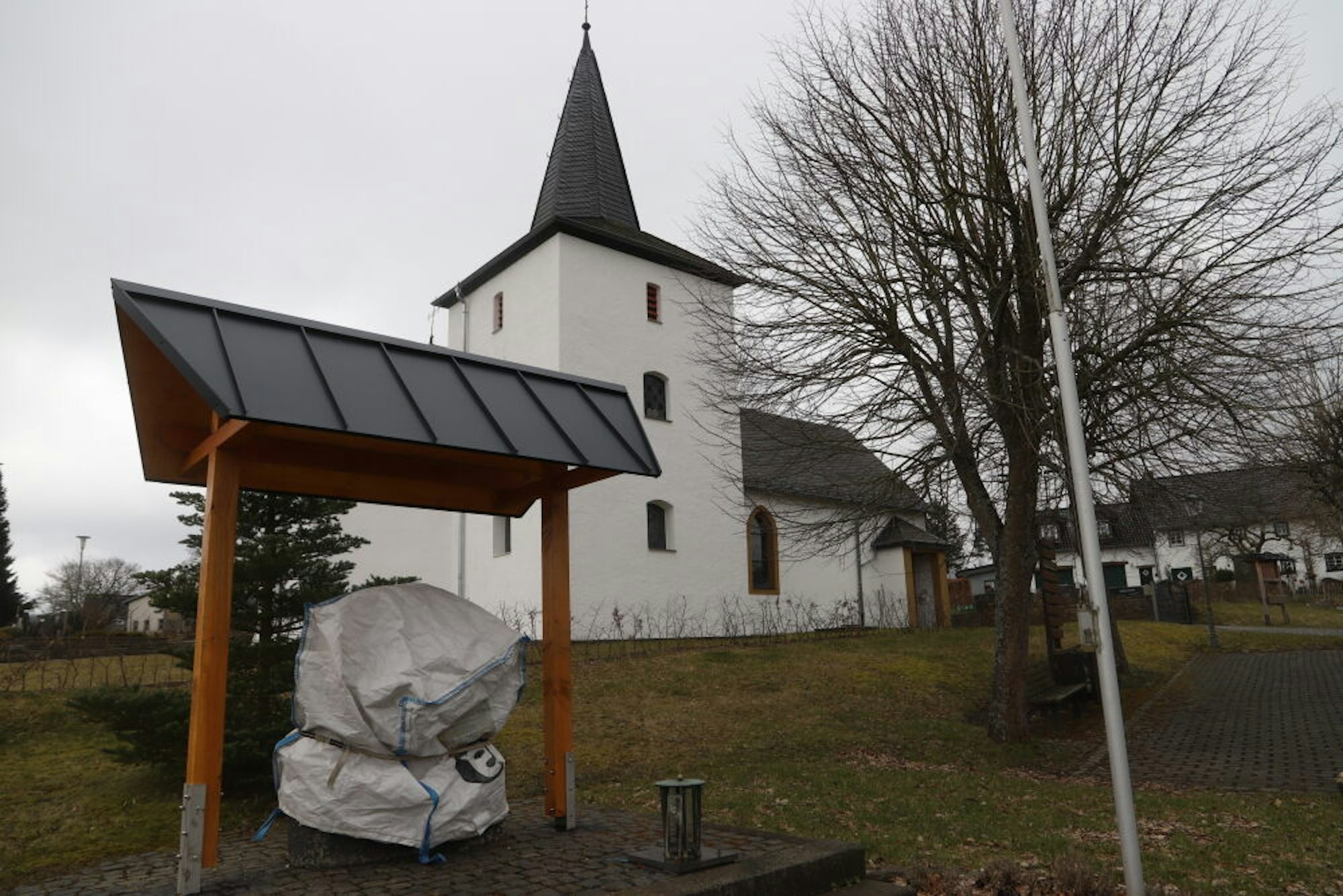 Wenn das Ehrenmal in Oberreifferscheid zurzeit mit einem Sack verhüllt ist, dann hat das nichts mit der an die Gemeinde gerichteten Beschwerde zu tun. Der Stein sei gerissen gewesen und werde deshalb von der Dorfgemeinschaft restauriert, erklärte Ratsmitglied und Anwohner Willy Bauer auf Anfrage. Damit der Stein kein Wasser mehr ziehe, sei ein Dach darüber errichtet und zum Schutz bis zur Fertigstellung der Sanierungsarbeiten ein Sack über das Ehrenmal gezogen worden. (sev)