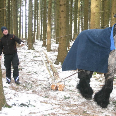 Mit den 800 Kilo schweren Kaltblütern ist Zöll oft im Wald im Einsatz.