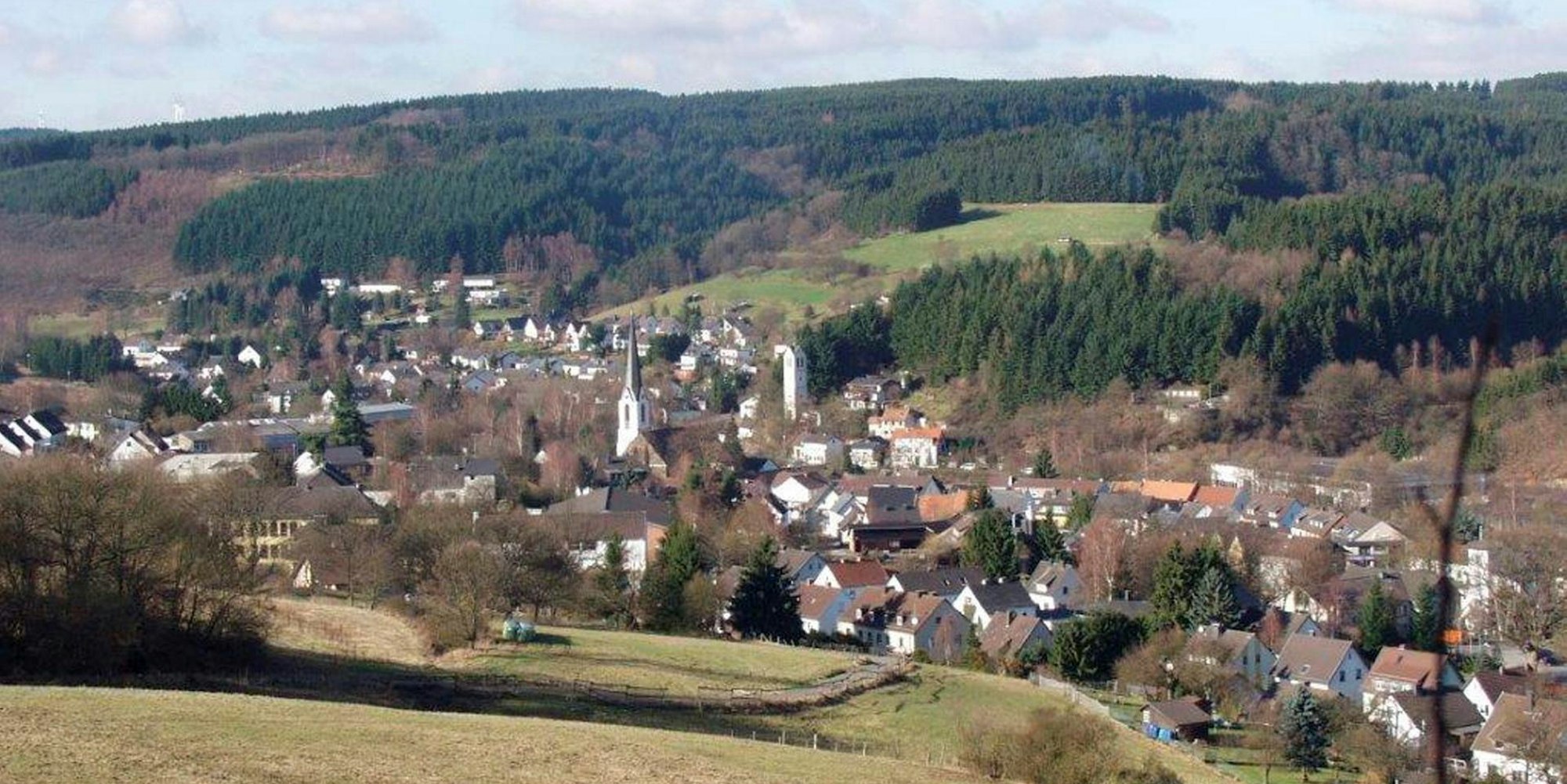 Blick auf den Kernort Hellenthal: In der Gemeinde, die sich bis an die belgische Grenze erstreckt, leben rund 8000 Einwohner auf 142 Quadratkilometern Fläche in 60 Ortschaften.