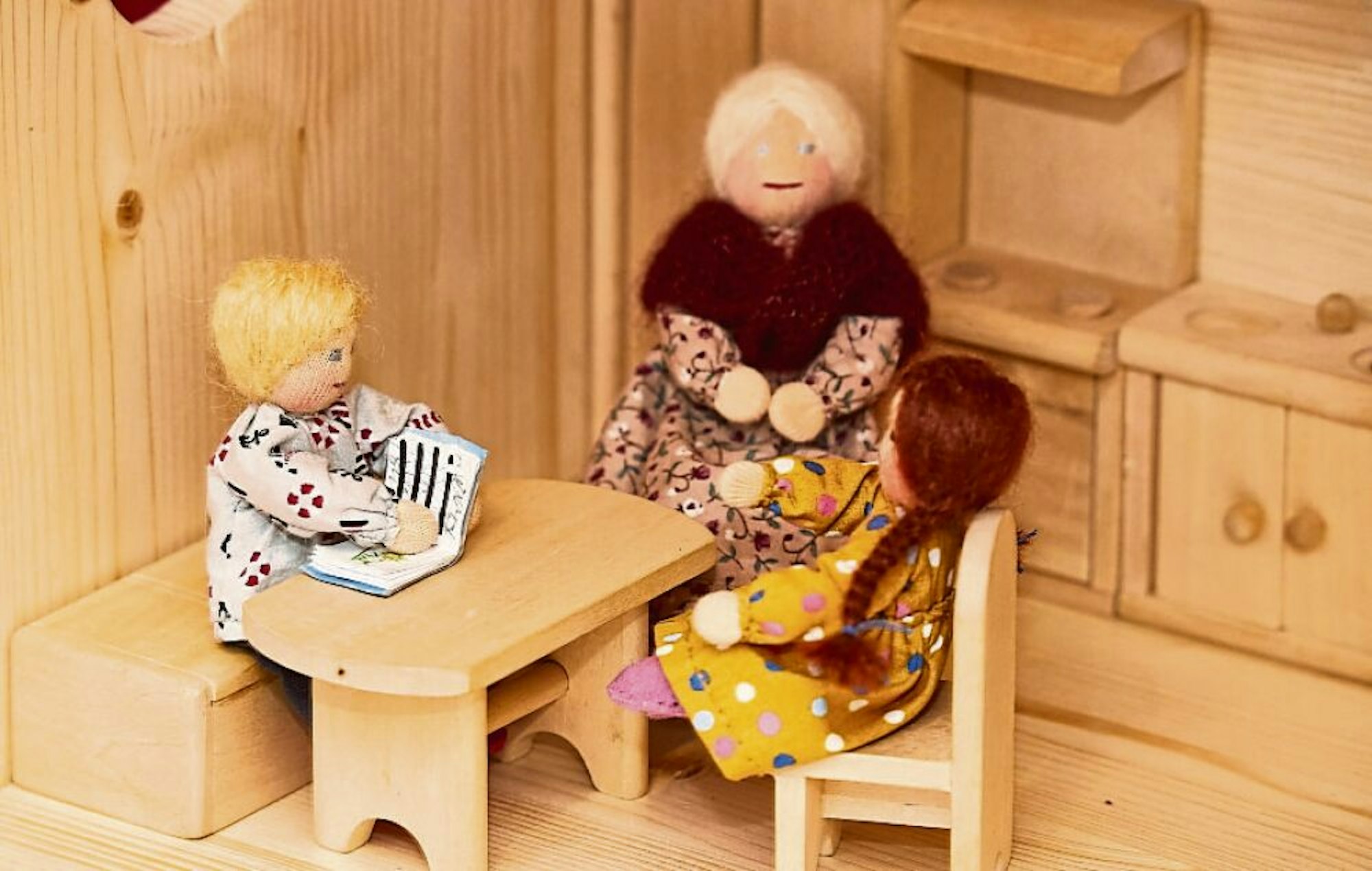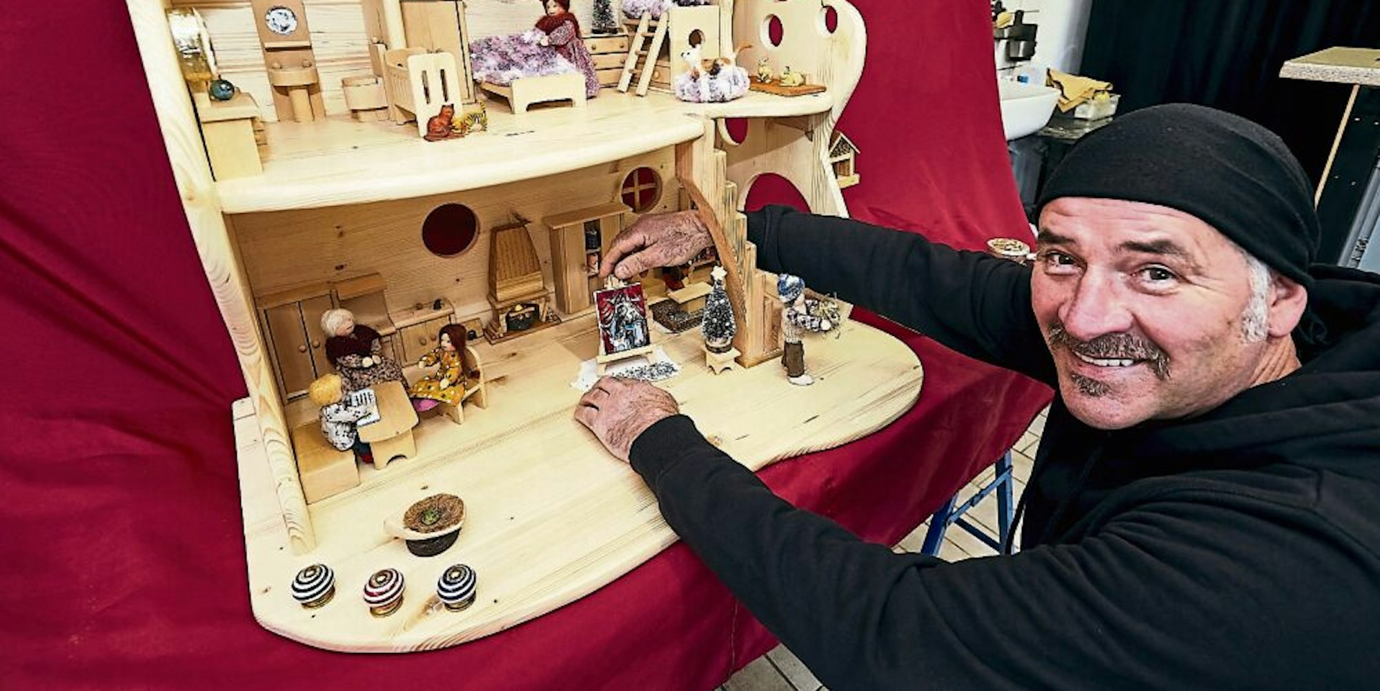Kein großes Problem für den gelernten Zimmermann, das Haus mal eben aus naturbelassenem Holz zu bauen. In wenigen Tagen war das Puppenhaus fertig. Dann kaufte er die Möbel dazu. Und eine Puppenfamilie, die eine Berliner Künstlerin gefertigt hat. Mehrere Katzen, ein Pferd und zwei Mäuse vervollständigen die Bewohnerschaft des Hauses.