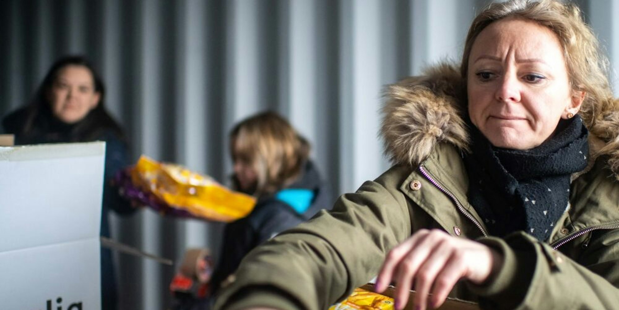 Zahlreiche Lebensmittelpakete packte Regina Herter für den Hilfstransport, der am Samstag in die Ukraine gehen soll.