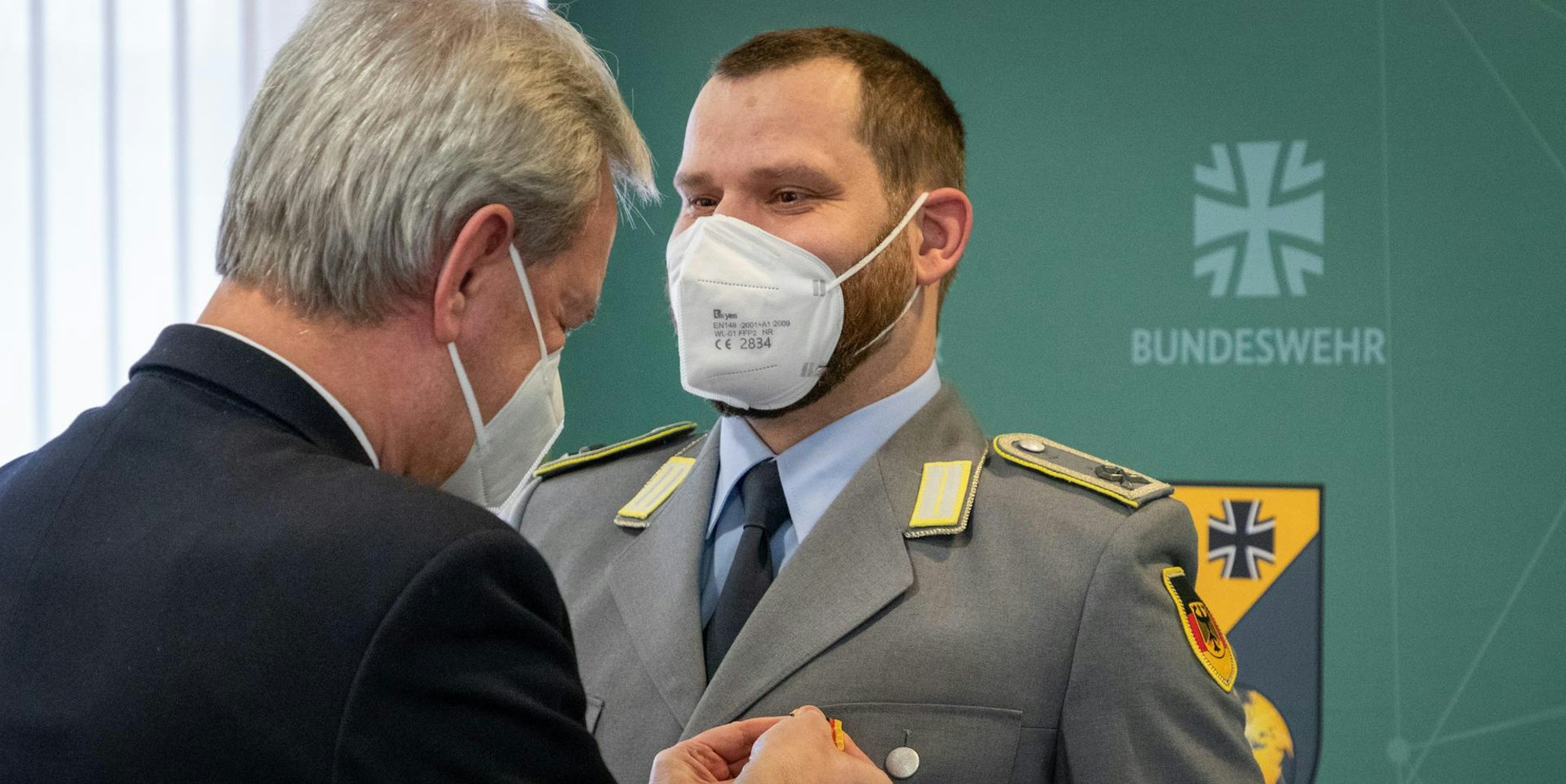Hauptfeldwebel Denis Engelmann erhielt das Bundeswehr-Ehrenkreuz in Gold in besonderer Ausführung.
