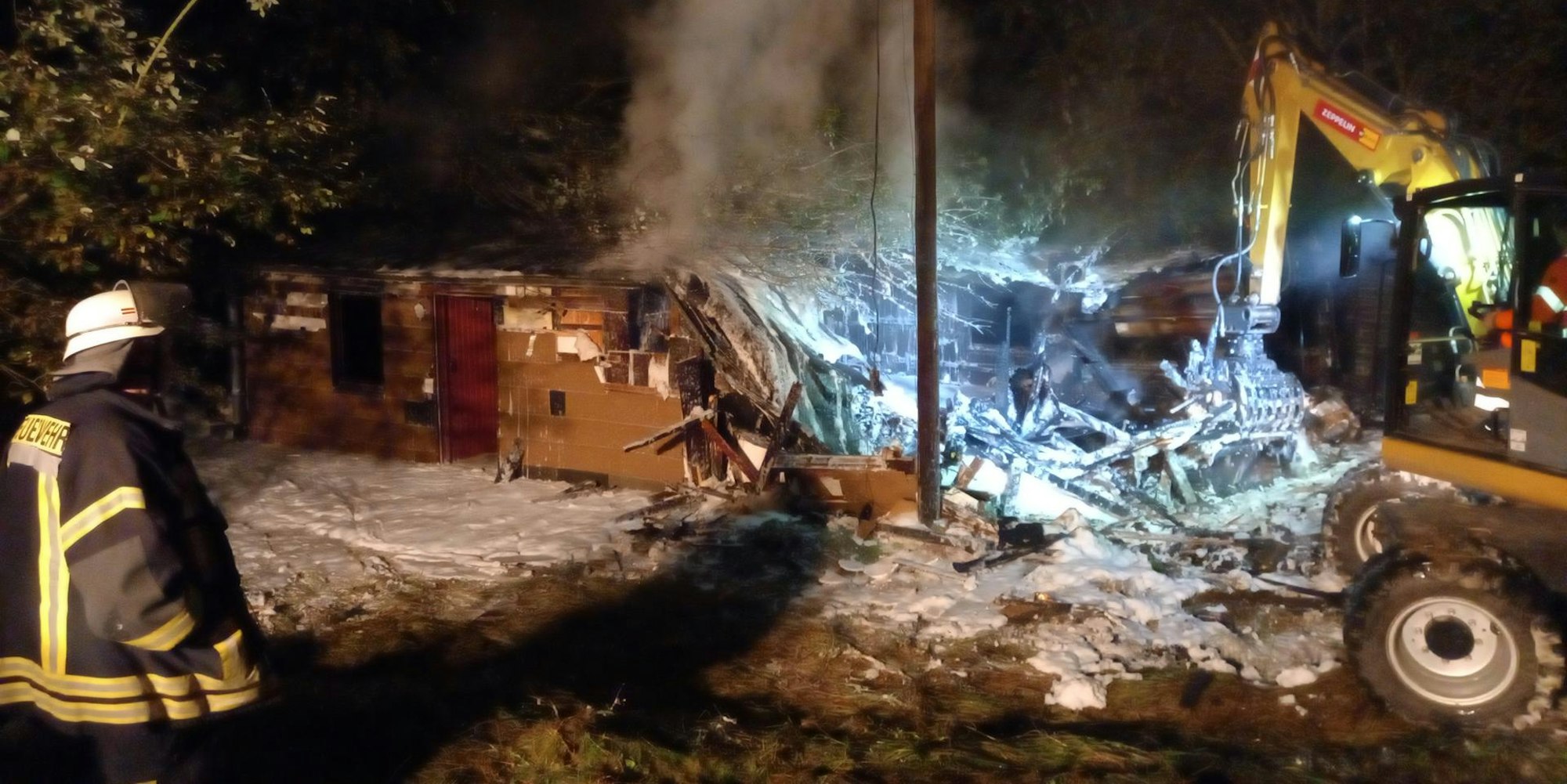 Nach zwei Stunden vergeblichem Kampf, so Heinen, seien die Führungskräfte zu dem Schluss gekommen, dass dem Feuer so nicht beizukommen sei: Ein Bagger samt Greifer musste her. Auch als der vom Bauhof zur Einsatzstelle gekommen war und das Gebäude Stück für Stück auseinander gepflückt wurde, dauerte es noch Stunden, bis die Einsatzstelle tatsächlich abgearbeitet war.