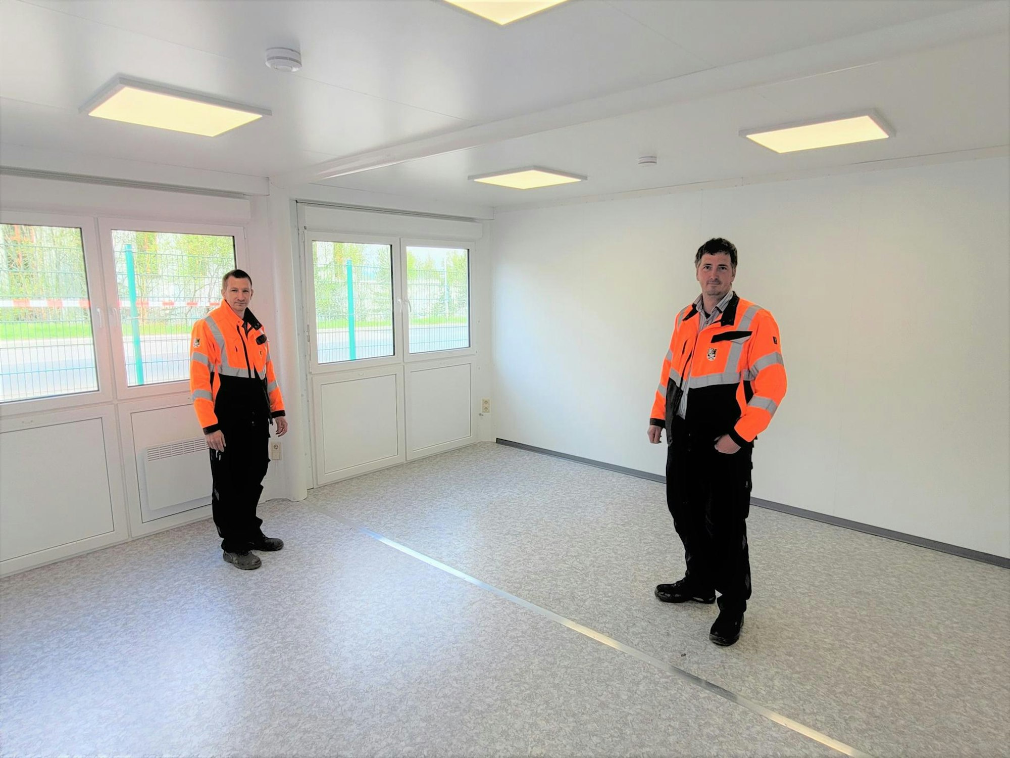 Von den acht Container sind je einer für Kaudel und seinen Stellvertreter Florian Marx. Außerdem werden sie als Umkleiden sowie als Aufenthalts- und Schulungsraum genutzt. Auch ein Toilettencontainer ist dabei. „Die Container erhalten zurzeit Strom- und Internetanschlüsse“, berichtet Marx.