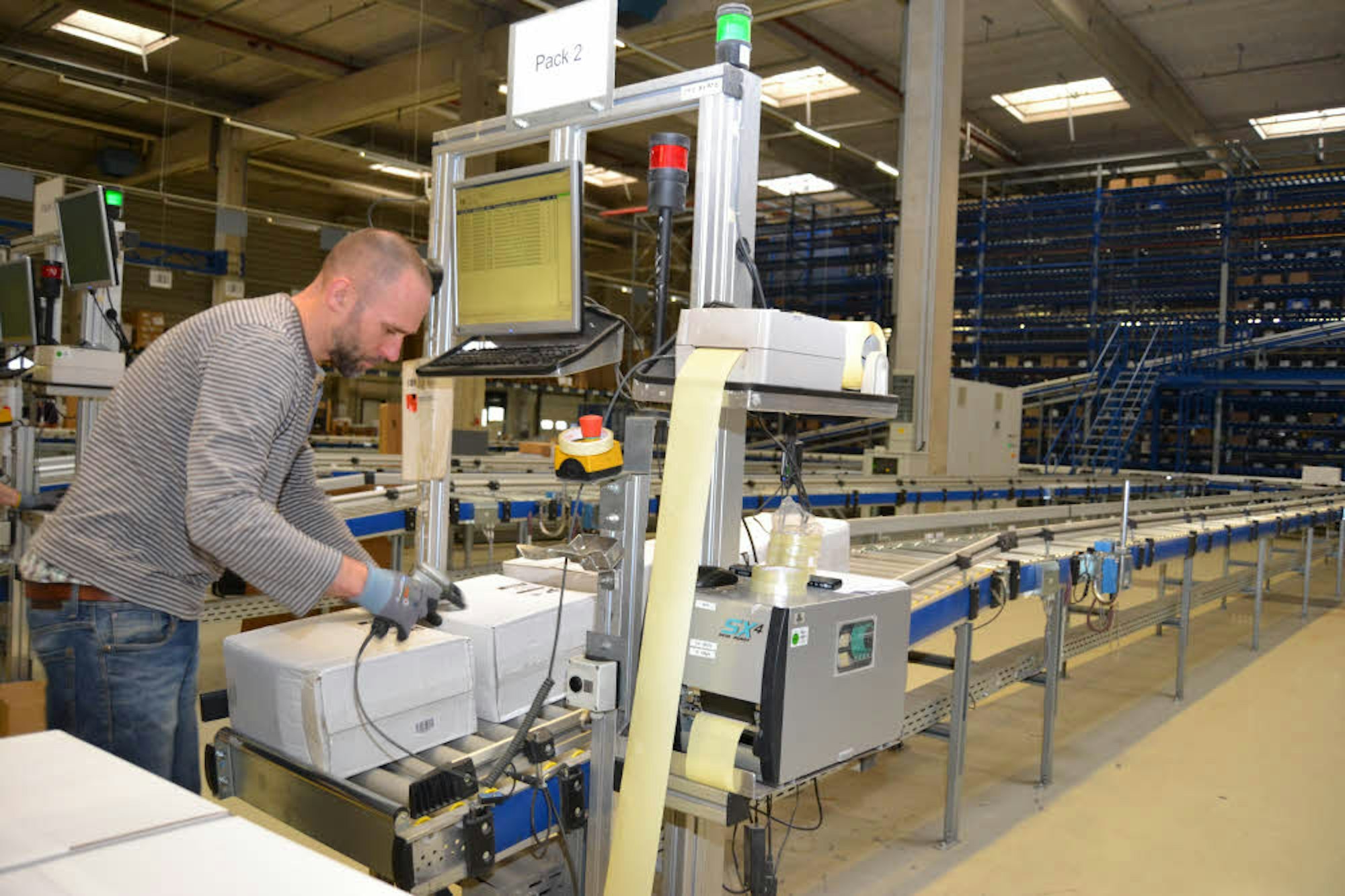 Die steigende Zahl von Paketen überschreitet die Kapazitäten dieses Transportbands. Um den „Flaschenhals“ zu beseitigen, wird ein weiteres Kartonlager gebaut.
