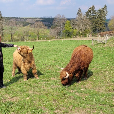 „Im Frühjahr sind innerhalb von rund zwei Wochen zwei meiner Kälber gerissen worden“, berichtet Landwirt Dreßen, der auf verschiedenen Wiesen rund um Kall seine schottischen Hochlandrinder weiden lässt. „Selbst die Knochen der Tiere waren weg. Das würde kein Hund machen“, ist sich Dreßen sicher. Er habe dann das Veterinäramt des Kreises Euskirchen angerufen, und Wolfsberater Wunsch habe daraufhin eine DNA-Probe genommen.