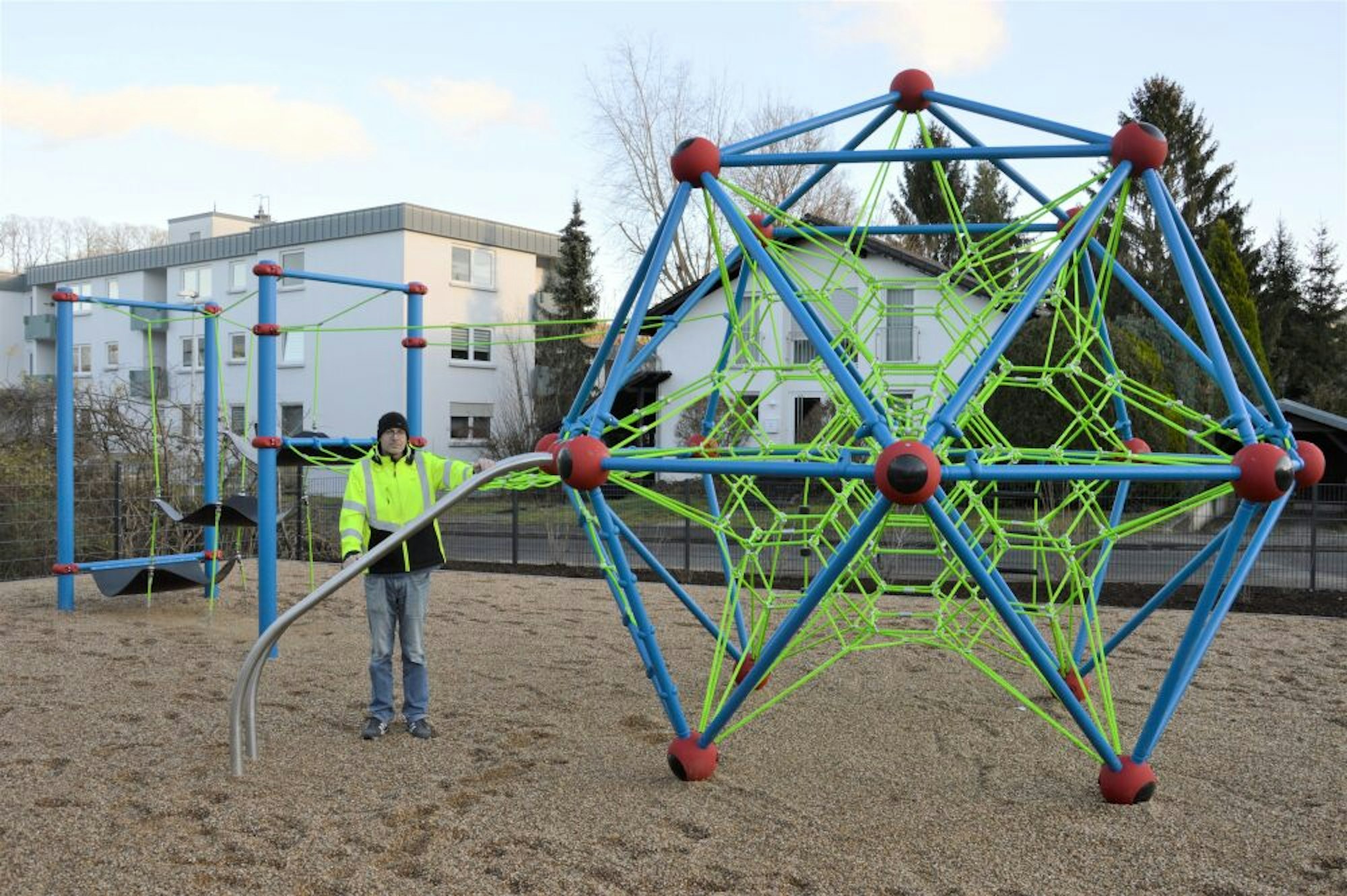 Das Klettergerüst steht in dem neu geschaffenen Spielbereich.