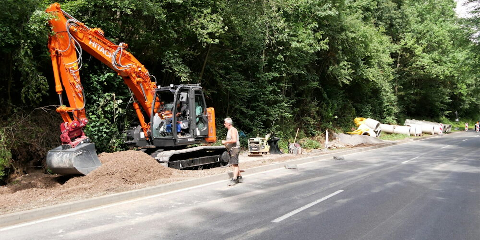 „Oberflächenwasser von der Straße sowie Wasser aus dem Ort Rinnen und dem daneben liegenden Hang sorgten in der Vergangenheit dafür, dass sich bei starkem Regen ein Rückstau bildete. Das lag auch daran, dass der offene Graben in ein Rohr mündete, dessen Einlauf durch Äste und Blätter verstopft wurde“, berichtet Markus Auel, Teamleiter Bauen bei der Gemeinde Kall. Zwar habe der Bauhof den Einlauf regelmäßig kontrolliert, doch auch das habe nicht geholfen, weil es bei Starkregen-Ereignissen oft einen böigen Wind gebe, der die Blätter von den Bäumen fege. Deswegen werde der Graben nun komplett verrohrt. Ein Planungsbüro habe ein entsprechendes Konzept entwickelt.