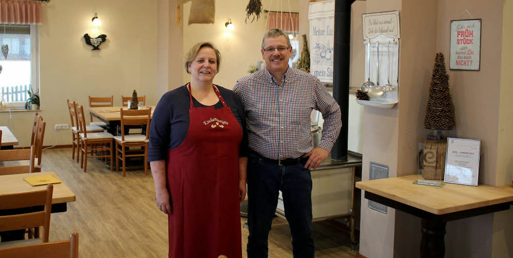 Krönung der bisherigen Anstrengungen: Für ihr Bauerncafé erhielt das Ehepaar Gentz den Eifel-Award der Zukunftsinitiative Eifel. „Wenn man den Eifel-Oscar bekommt, ist man schon stolz“, sagt Cilia Gentz. „Die Eröffnung des Bauerncafés war ein guter Schritt. Er ist mit Arbeit und Stress verbunden, aber schönem Stress. Die Leute sind zufrieden.“