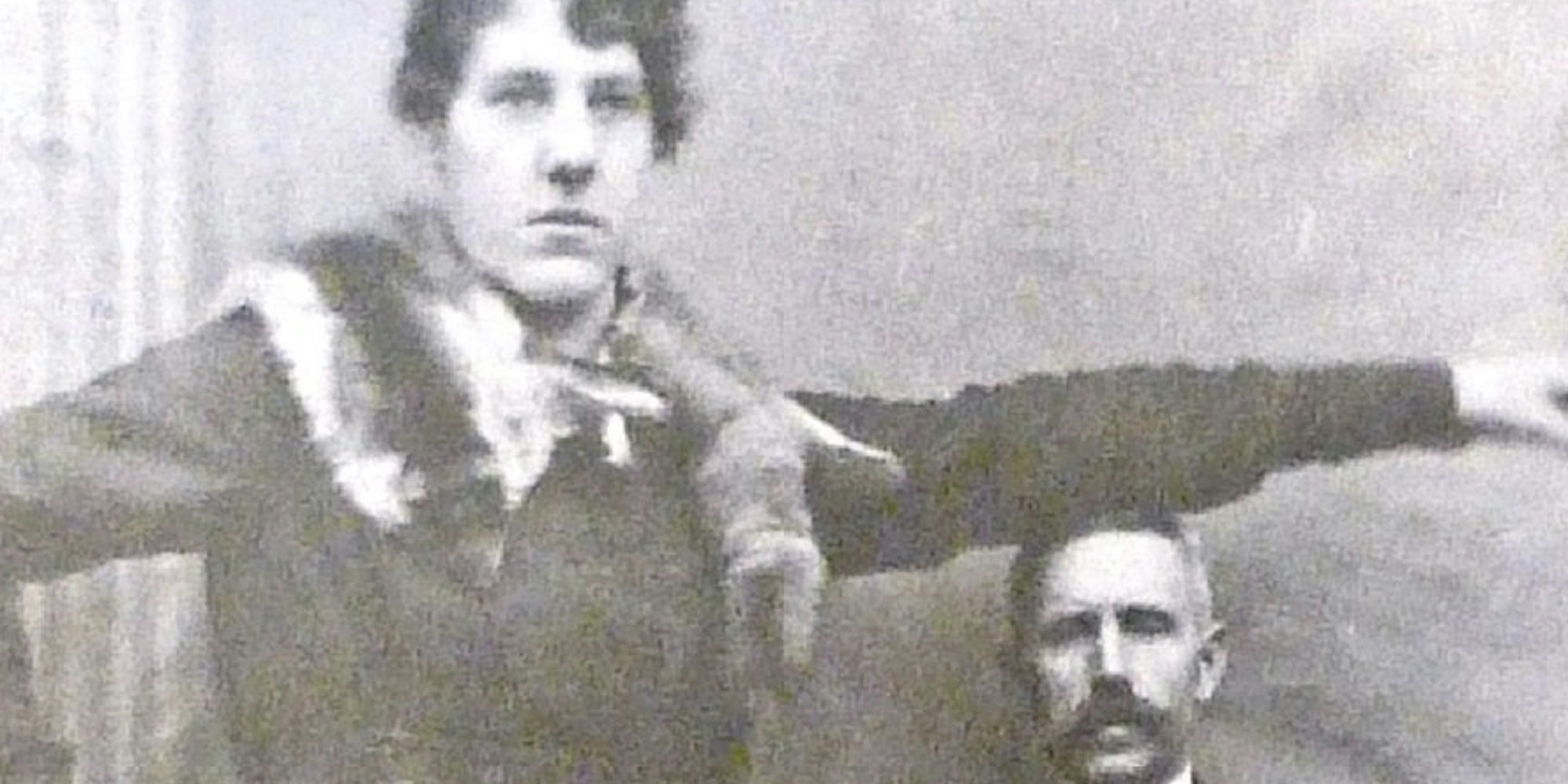 Ein Foto in der Sammlung Johnen fällt sofort ins Auge: Eine große Frau streckt ihren linken Arm aus. Unter diesem ausgestreckten Arm steht ein erwachsener Mann. Jürgen Johnen wusste, dass die Frau aus der Eifel stammt, davon hatte er bereits gehört. Mehr wusste er jedoch nicht zu diesem Bild zu sagen.