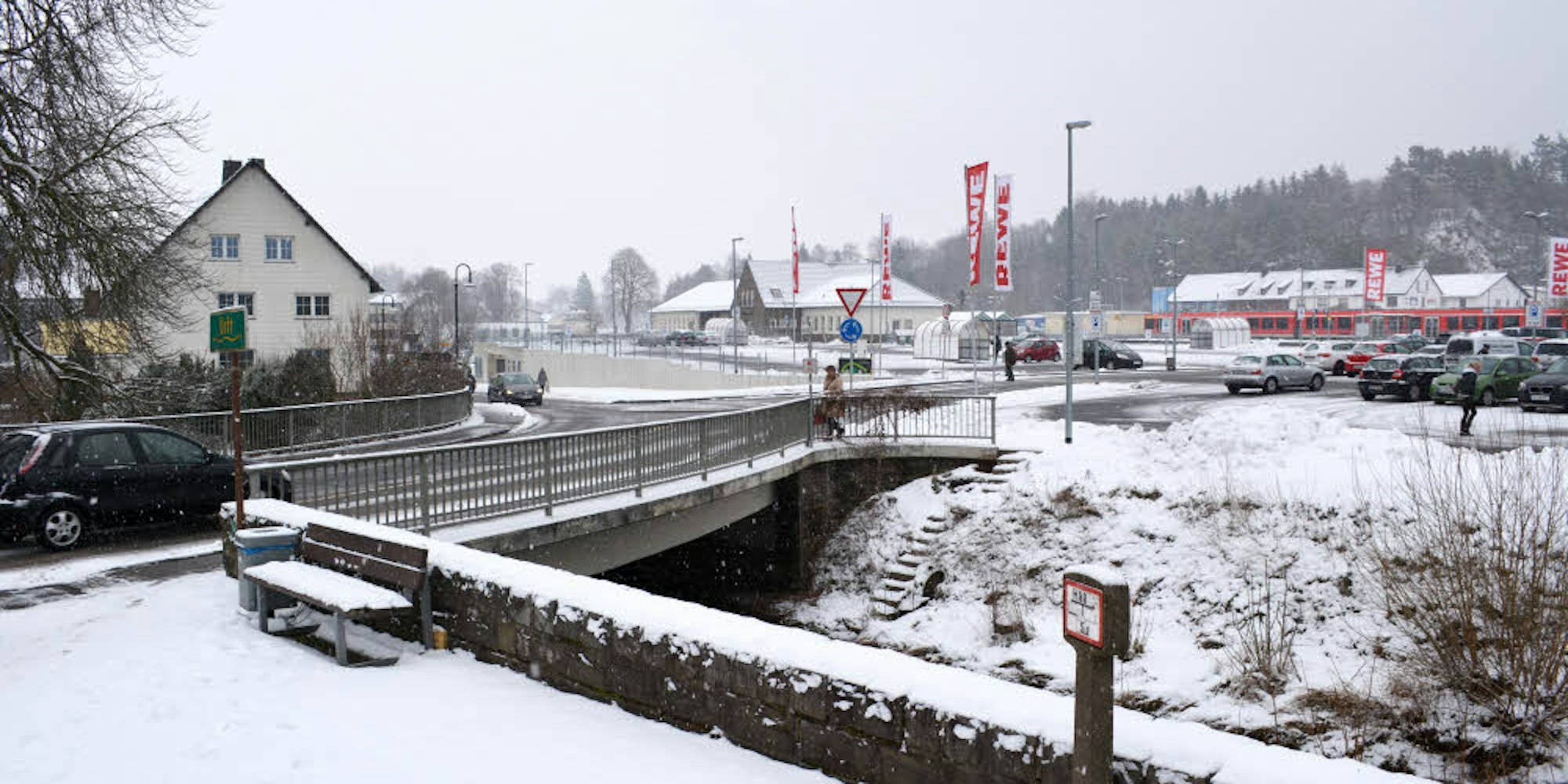 Eine der ersten Maßnahmen ist der Neubau der Urftbrücke am Rewe-Markt, der detailliert vom Aachener Planungsbüro Thormählen und Peuckert vorgestellt wurde. Dort wird aber nicht nur eine Brücke, sondern es werden zwei Brücken gebaut. Denn zusätzlich wird damit der Bereich am Hallenbad erschlossen.