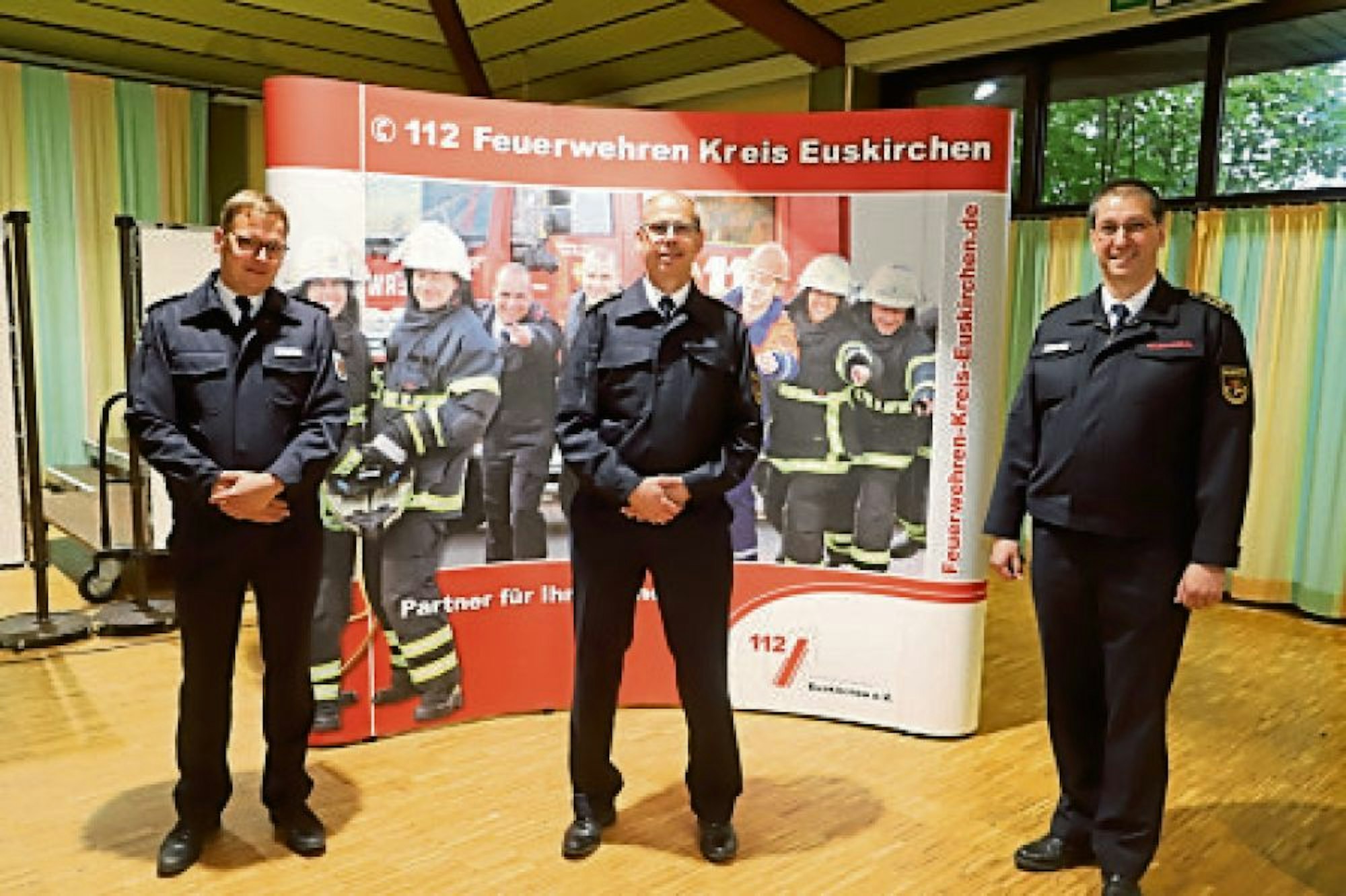 Kall – Pandemiegerecht, unzeremoniell und nüchtern wurde die Wachablösung an der Spitze des Kreisfeuerwehrverbands vollzogen. Keine Umarmung, kein herzliches Händeschütteln – nur einen kurzen Ellenbogencheck tauschten der langjährige Vorsitzende und ehemalige Kreisbrandmeister Udo Crespin und sein Nachfolger Peter Jonas bei der Delegiertenversammlung aus, als Crespin seinen Platz am Vorstandstisch für Jonas räumte. „Die Ämter des Kreisbrandmeisters und des Vorsitzenden des Feuerwehrverbandes sollten in einer Hand sein“, konstatierte Crespin unsentimental, als er Jonas zur Wahl vorschlug.