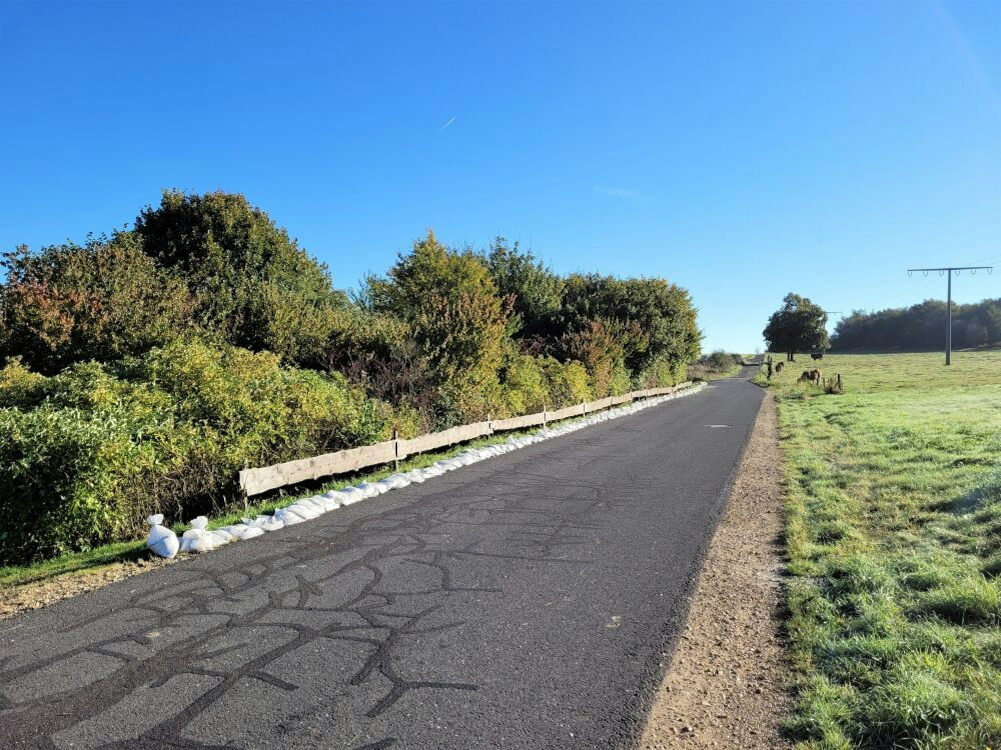 Mit Sandsäcken wird die Sistiger Grundschule an verschiedenen Stellen vor dem Regenwasser aus der Krekeler Heide geschützt.