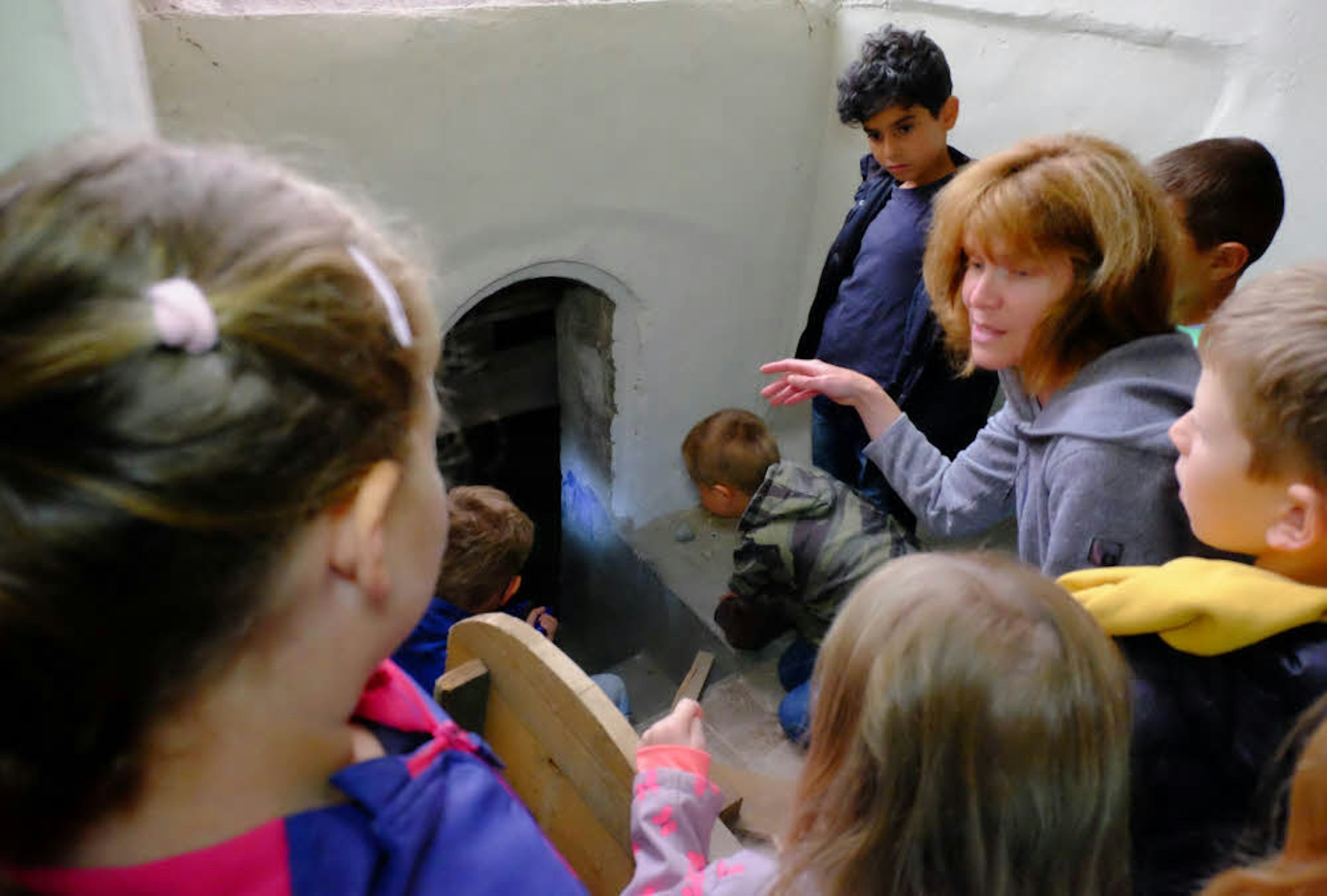 Wo ist das Versteck? Alice Toporowsky ließ die Kinder in die dunkle Öffnung in der Mauer schauen.