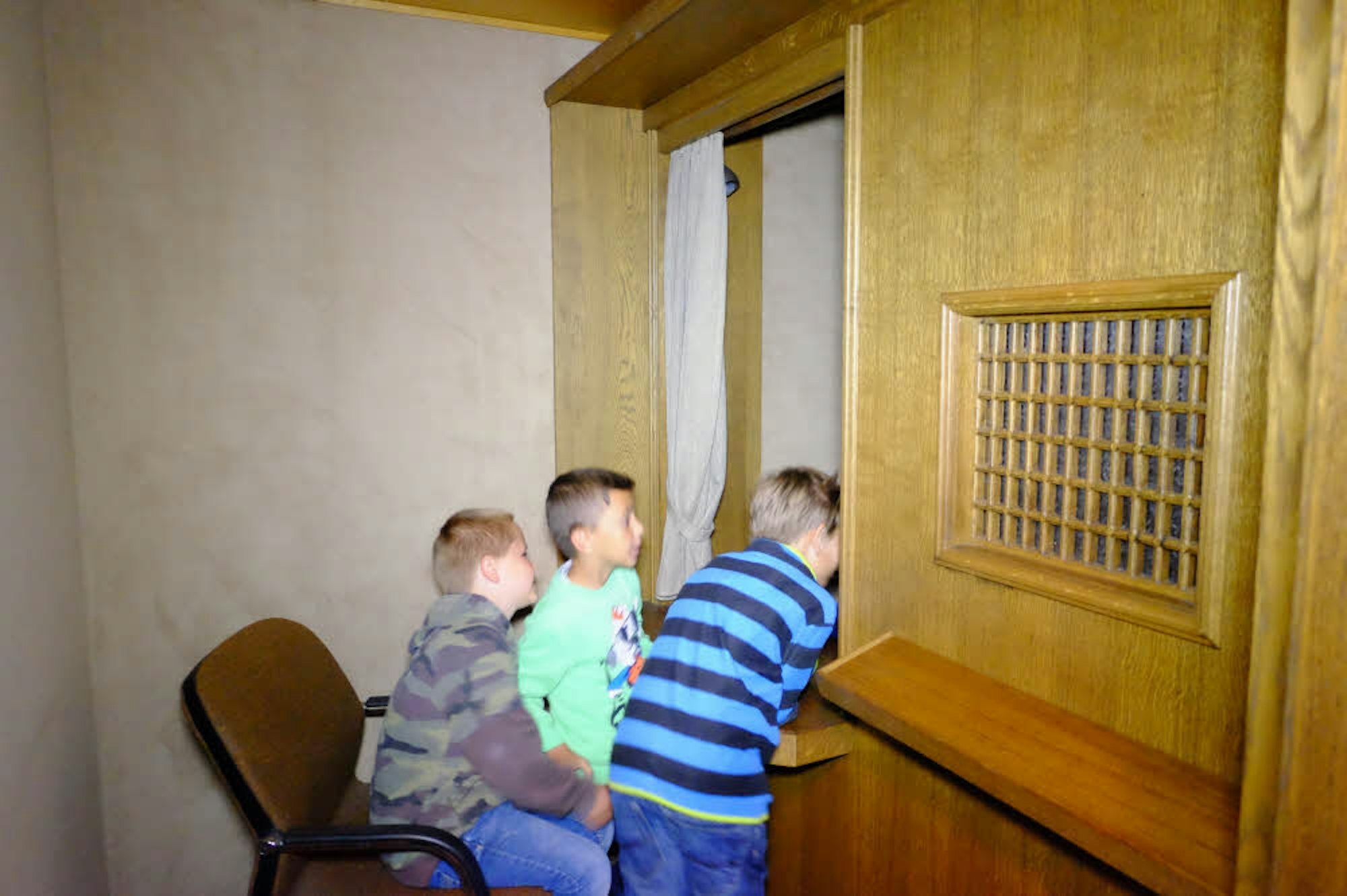 Was ist hinter dem Gitter im Beichtstuhl? Die Jungen wollten es ganz genau wissen und warfen einen Blick „hinter die Kulissen“.