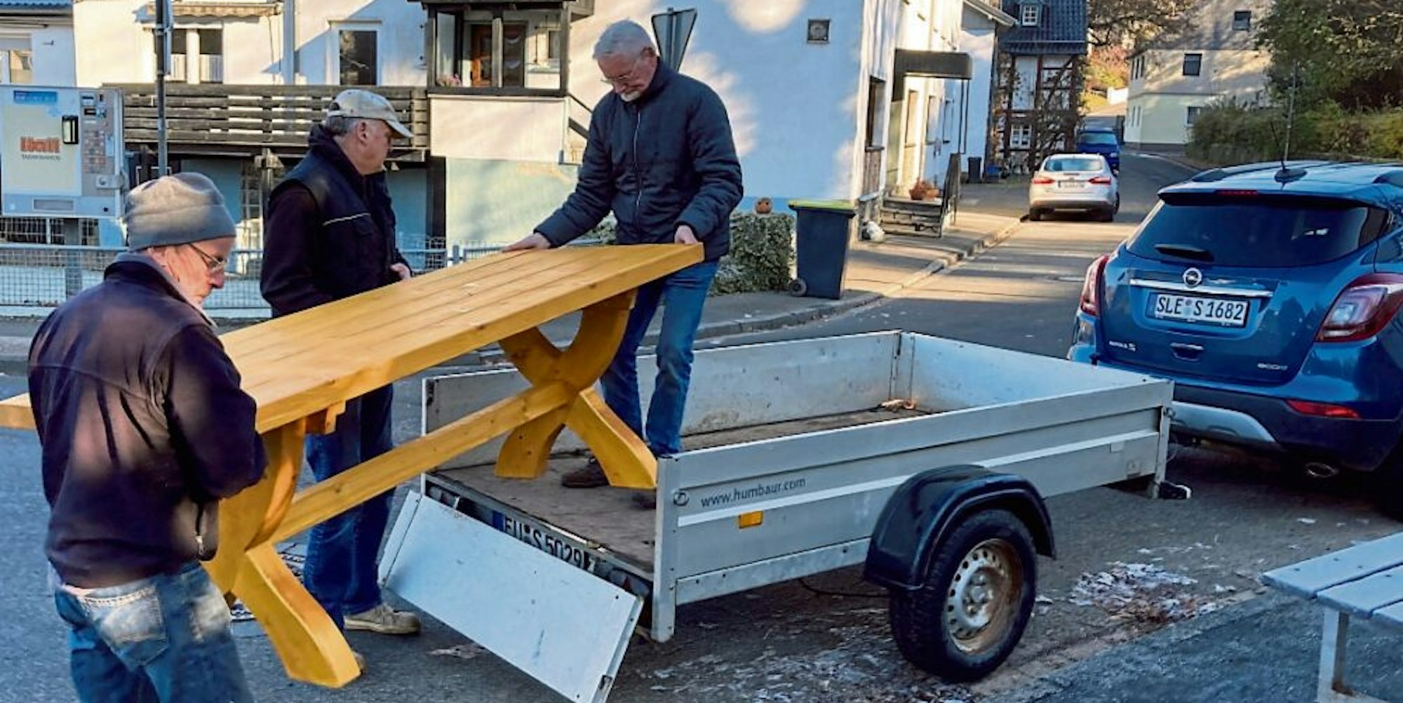 Am Treffpunkt „Bei Eddi an d'r Eck“ hat der Eifelverein mit einigen Helfern eine neue Sitzgruppe aufgestellt.