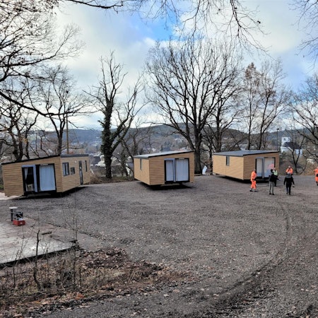 Nachdem der Wochenmarkt nach der Flut vom Rathausvorplatz auf den Parkplatz des Rewe-Centers verlegt worden war, stand nun der Umzug auf den Bahnhofsvorplatz an. Am Bahnhofsvorplatz müssen zwar nach der Flut auch noch Schäden behoben werden, doch Bürgermeister Hermann-Josef Esser hatte vorgeschlagen, damit zu warten, bis die beiden Wohn- und Geschäftshäusern an den Enden des Platzes errichtet worden sind.