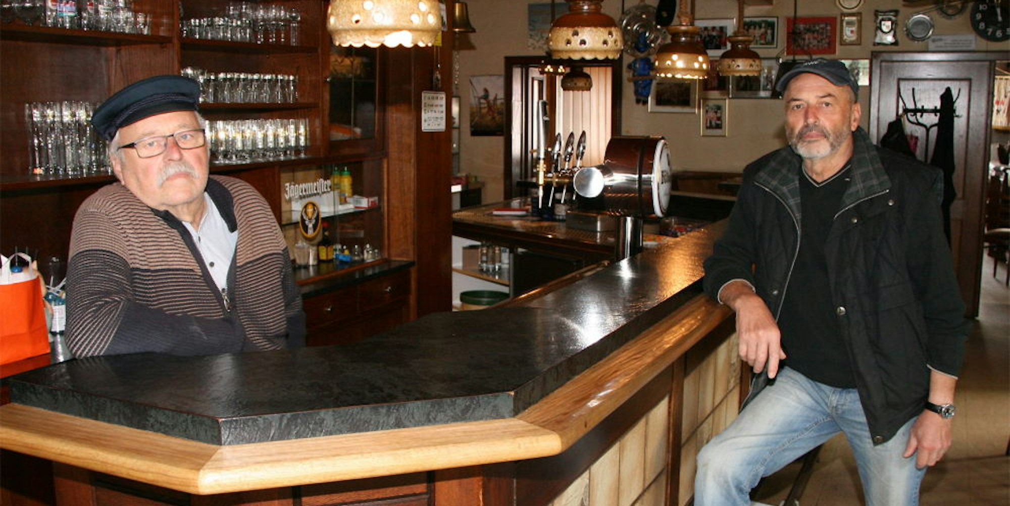 Manfred Prinz (l.) lässt seine Kneipe zu, weil der Thekenbetrieb nicht gestattet ist. Kumpel Peter Kump teilt die Bedenken.