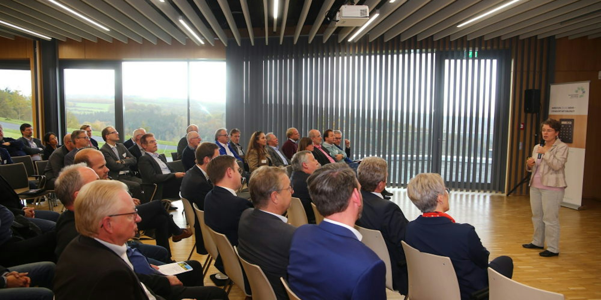 Rund 70 Teilnehmer waren zur Tagung über den Strukturwandel im Rheinischen Revier gekommen. Alexandra Landsberg (r.) vom Wirtschaftsministerium NRW und Ralph Sterck, Leiter der Zukunftsagentur Rheinisches Revier, hielten Vorträge.