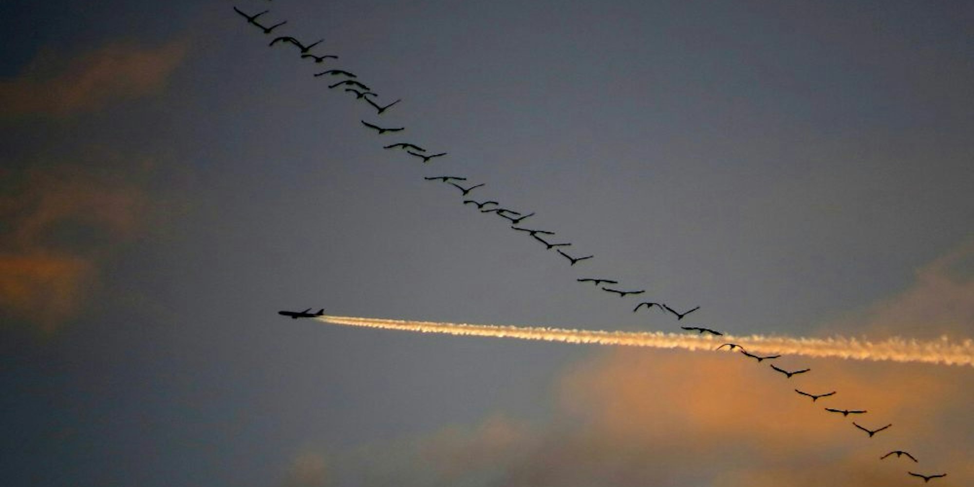 Ohne Federverlust überstanden: diese Kraniche am Satzveyer Firmament die Begegnung mit dem Flugzeug.