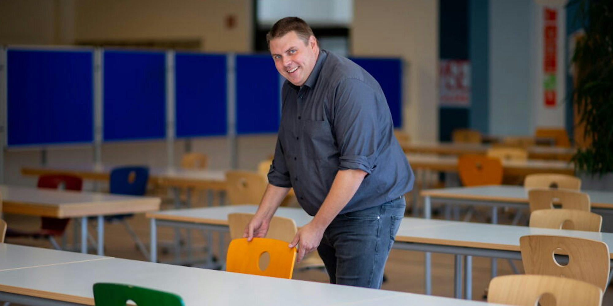 Stühlerücken in der Mensa zum Schutz der Schüler: Michael Mombaur, Leiter der Marienschule Euskirchen.