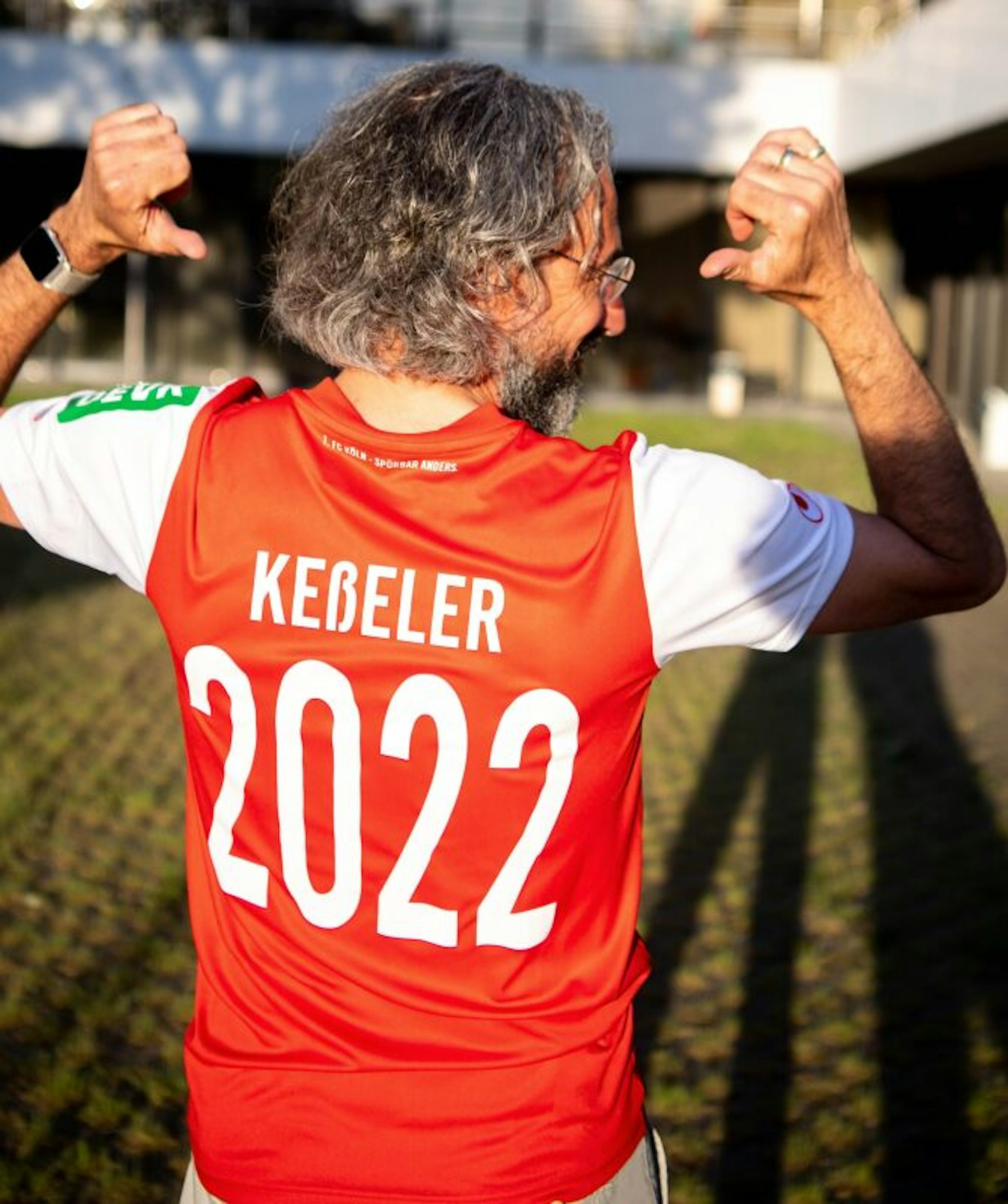 Es muss zwar – Stand Sonntagabend 23 Uhr – ziemlich viel zusammenkommen, dass das reicht, aber abgeschrieben hat Keßeler den Landtagssitz nicht. „Ich komme praktisch aus der vierten Liga und klopfe plötzlich an die Tür zur Champions-League. Das ist schon Wahnsinn. Wir haben ein sehr gutes Ergebnis erzielt“, sagte Keßeler, der von der Kreistagsfraktion der Grünen ein Trikot des 1. FC Köln mit seinem Namen drauf erhielt.