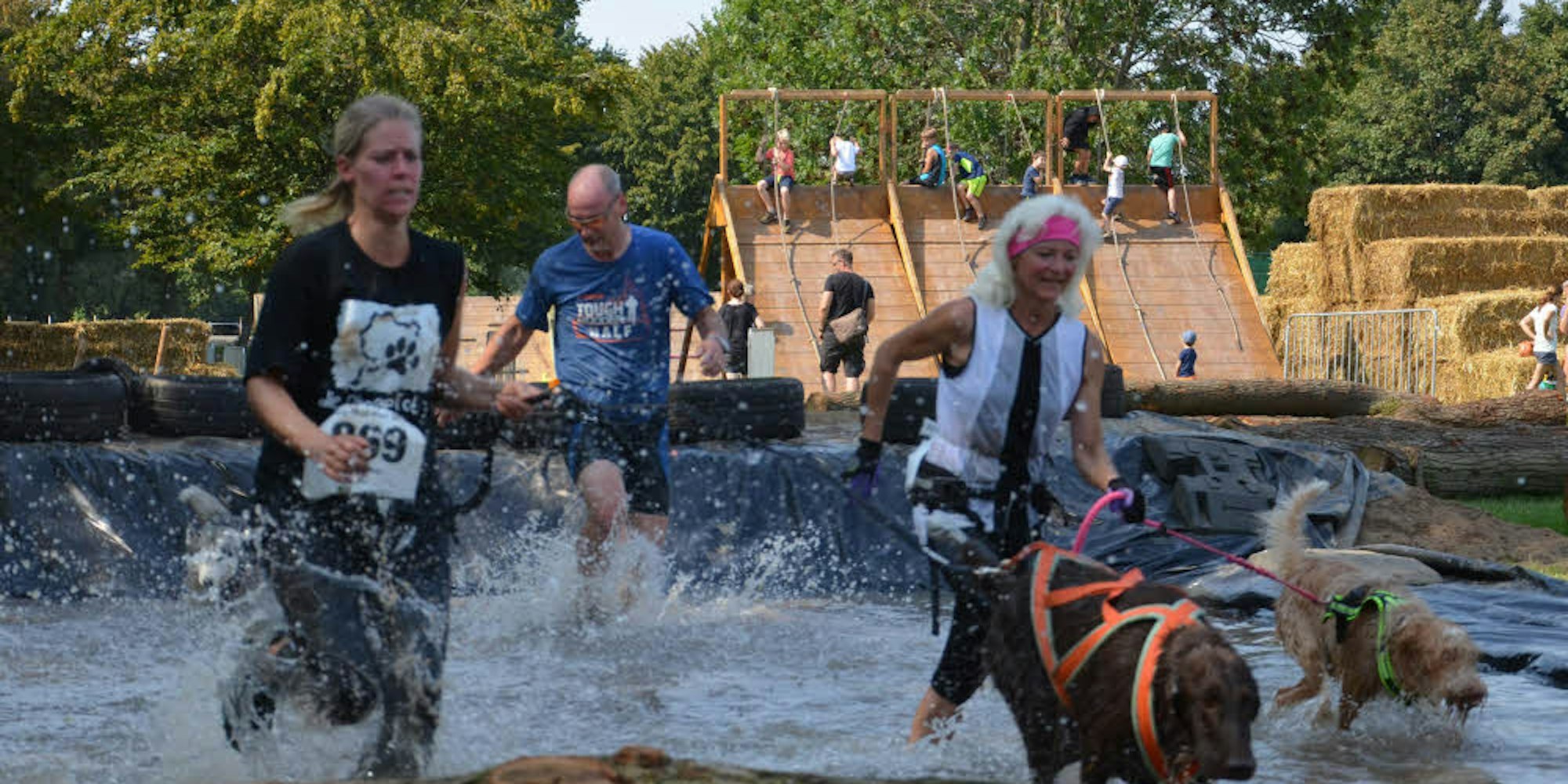 Das ging ja noch. Viele Teilnehmer des Dog-Mud-Run hatten anschließend nasse Hunde im Auto. Der Lauf war vom Sportverein Euskirchener Zughunde unter der Leitung von Ulrike Esser, die selbst am Rennen teilnahm, organisiert worden. Die etwa 100 Teilnehmerpaare sorgten bei den Zaungästen für jede Menge Vergnügen.