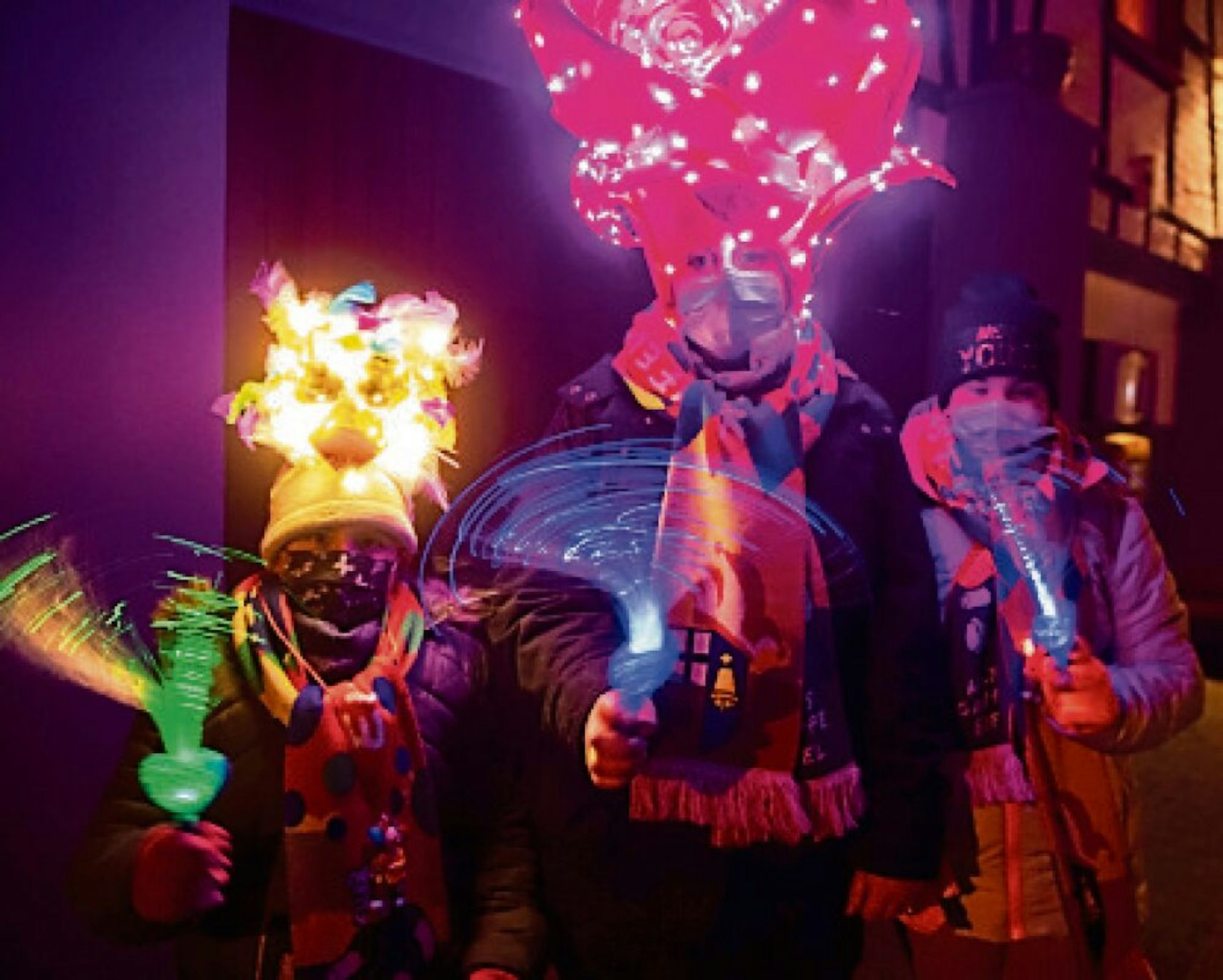 An die Kostüme des Lichterzochs erinnert Familie Becker.