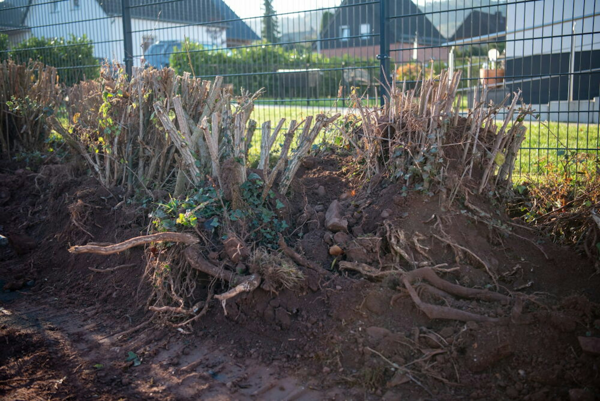 Die Sträucher auf dem Spielplatz an der Pützgasse wurden ausgegraben, sie sollen von belasteter Erde befreit wieder eingepflanzt werden.