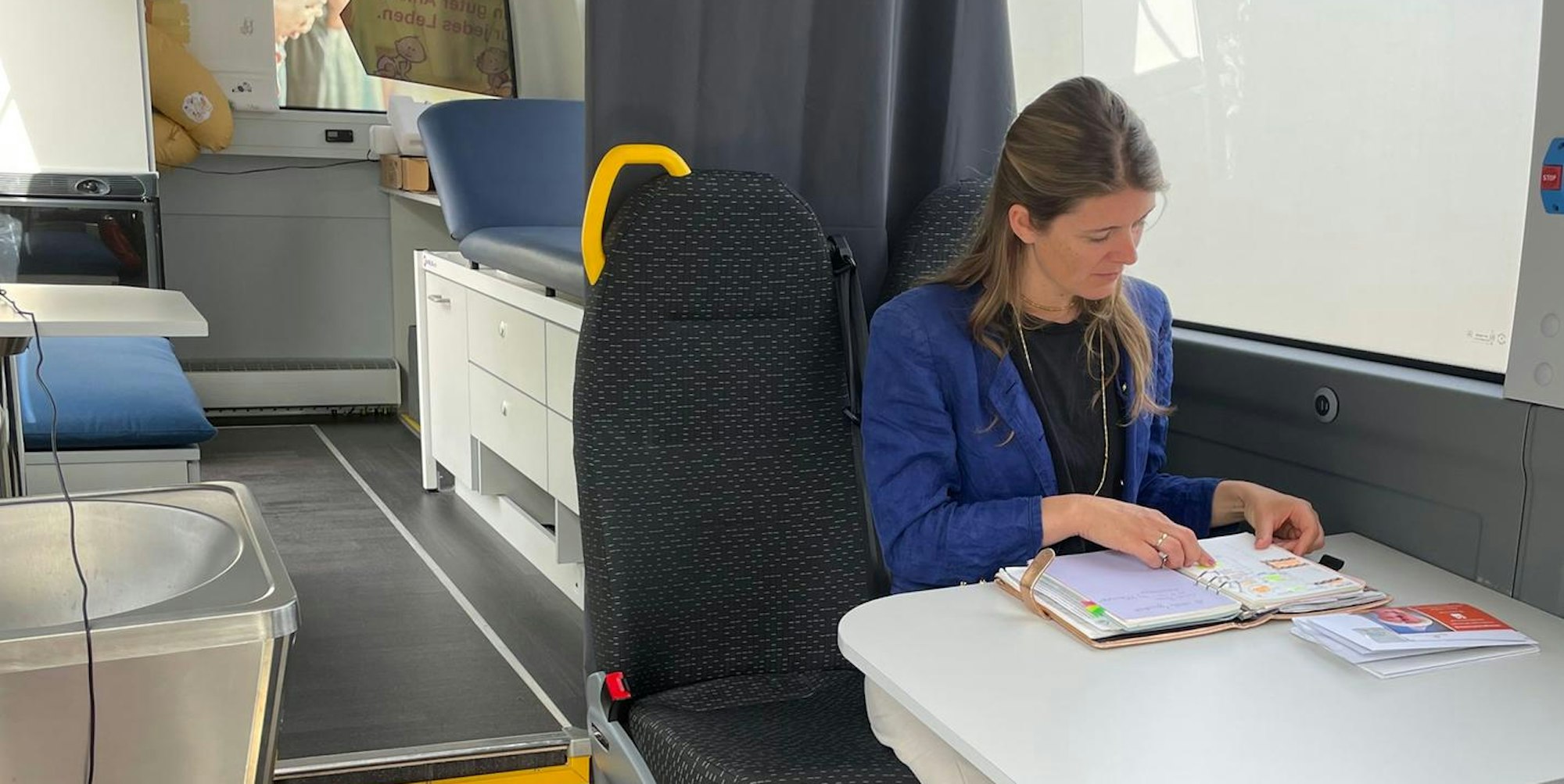 Schließlich ist der Kleinbus mit allem ausgestattet, was zu einer fahrenden Hebammenpraxis dazugehört: Eine Liege und einem Waschbecken in einem abgetrennten Bereich für die Privatsphäre, einen Tisch mit bequemen Stühle für das Gespräch und sogar eine Wickelauflage für die Kleinsten und eine Babywaage gibt es. Nur Geburten und die Betreuung der Frauen während der Geburt, kann Batista-Jäger nicht anbieten.