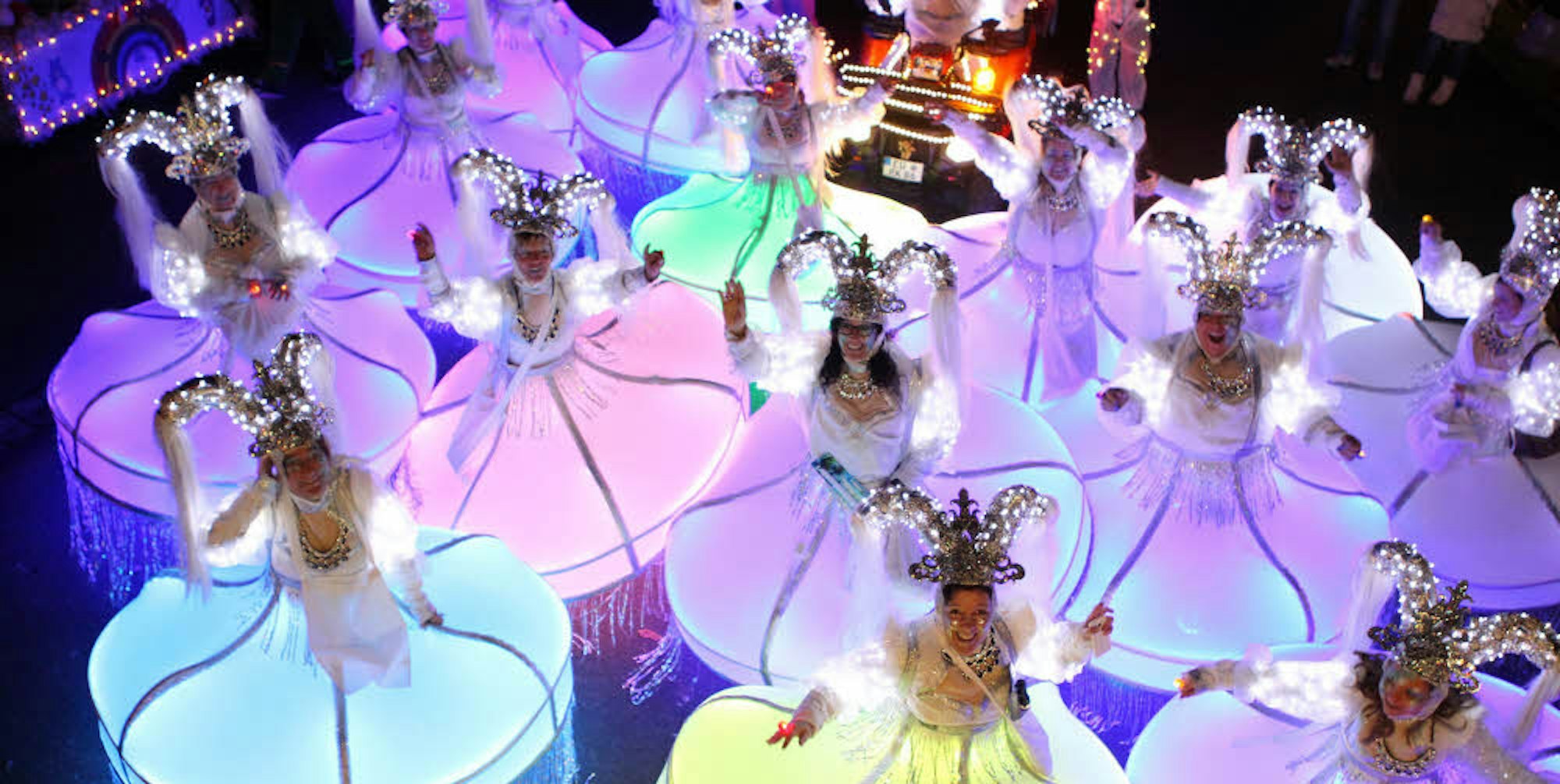 Welch ein Leuchten: Die Eisköniginnen und all die anderen funkelnden Jecken machen den Lichterzoch zu einem Erlebnis.