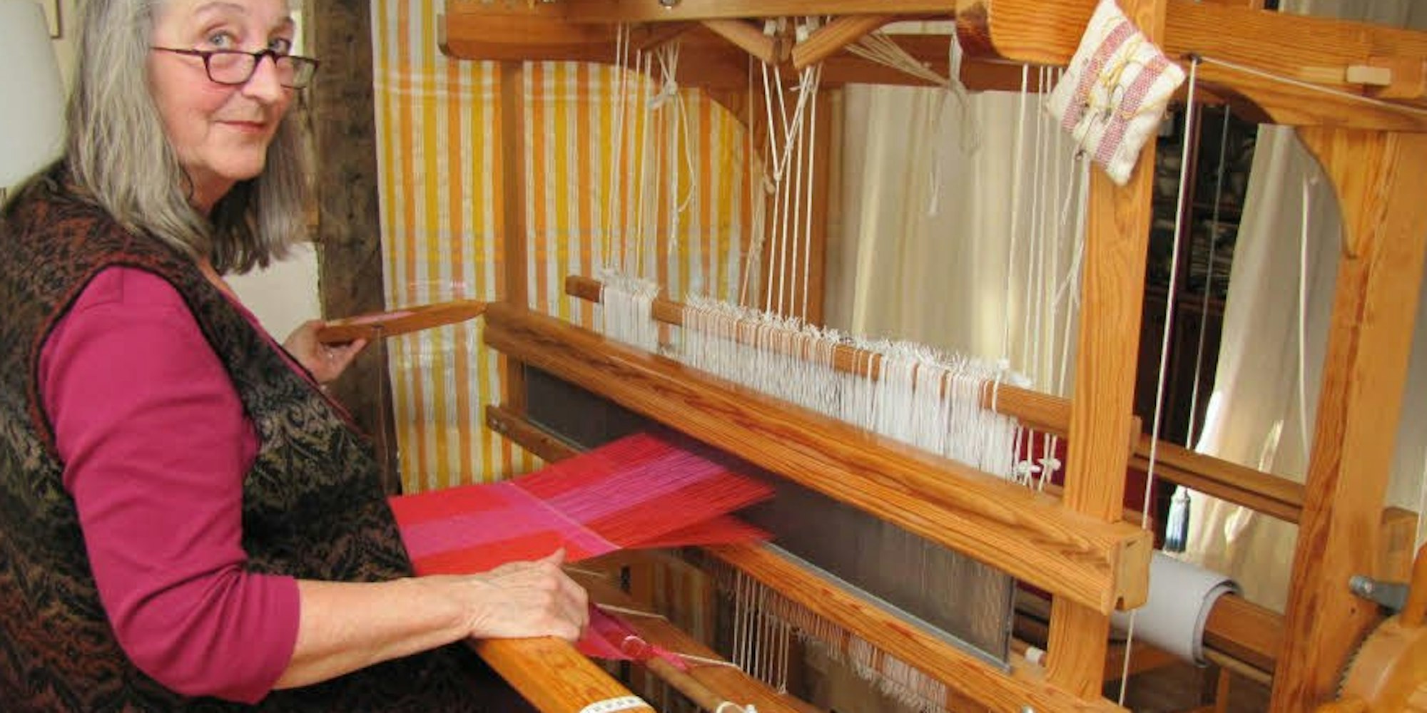 In der Floisdorfer Werkstatt von Anne Haag stehen drei Webstühle, an denen sie ihre Kenntnisse in Kursen weitergibt.
