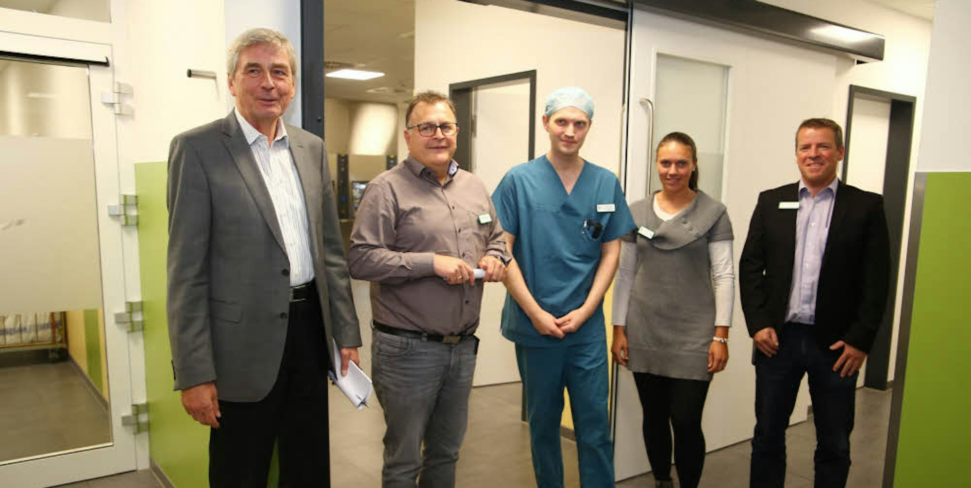 Die verschiedenen Maßnahmen in Sachen Hygiene und Keim-Vorsorge im Kreiskrankenhaus stellten Manfred Herrmann (v.l.), Markus Thur, Tobias Werth, Sabrina Bredel und Claus Dümmer vor.
