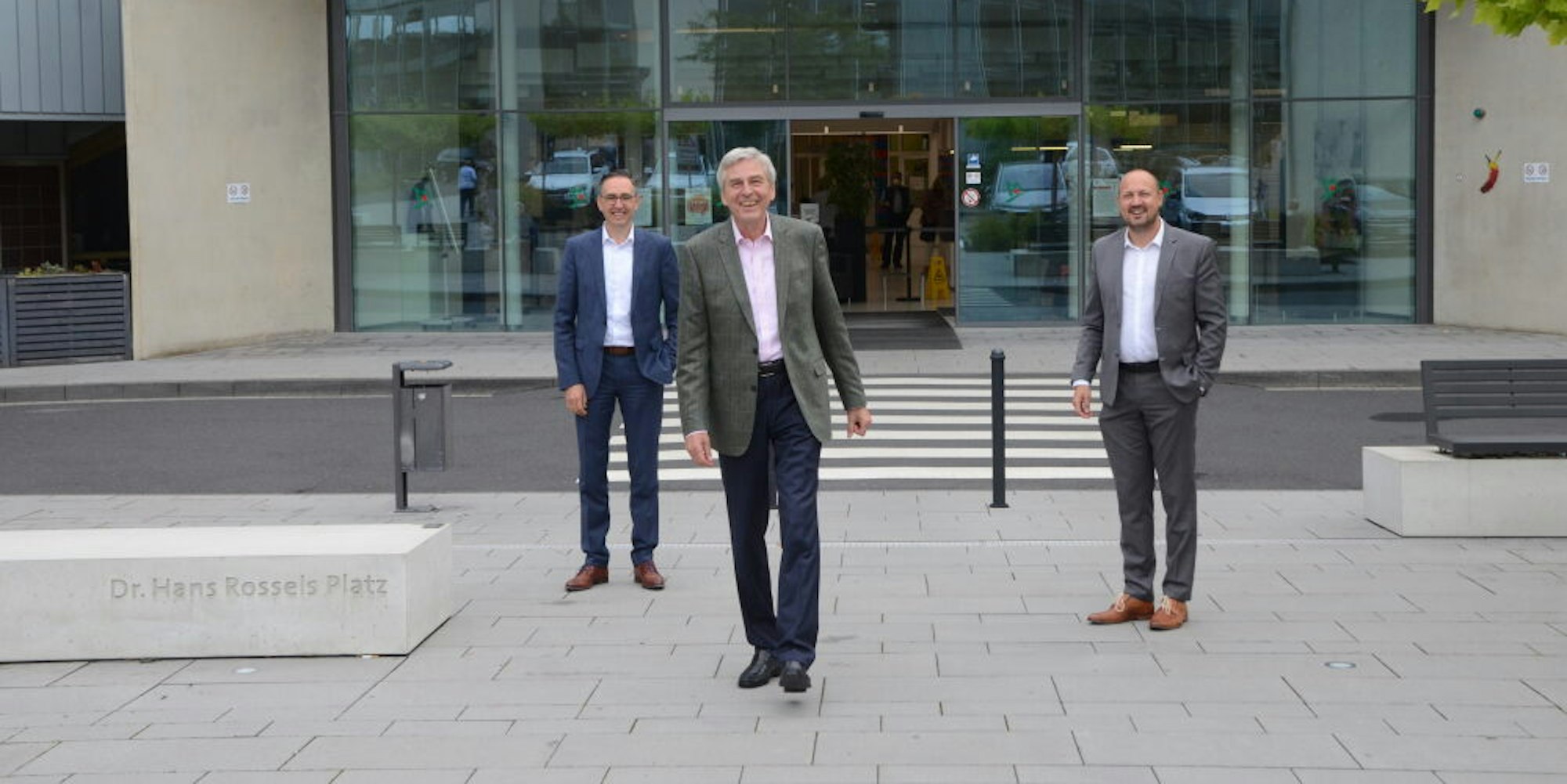 Geschäftsführer Manfred Herrmann (M.) verabschiedet sich nach 30 Jahren vom Kreiskrankenhaus. Martin Milde (l.) und Thorsten Schütze leiten nun die Geschicke des Konzerns.