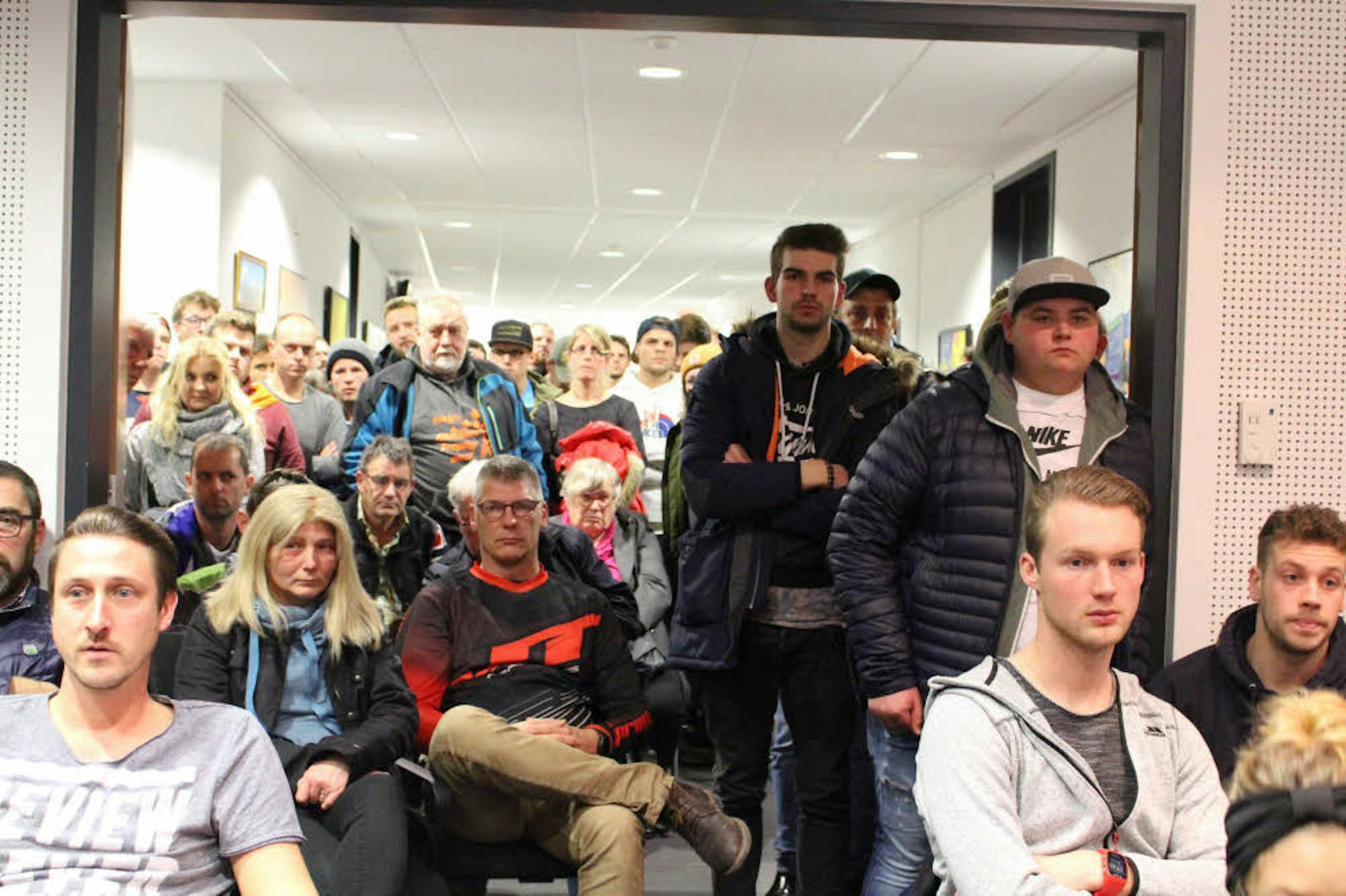 Bis in den Flur drängten sich die Ausschussbesucher: Sie waren durch die Berichterstattung in dieser Zeitung auf die Pläne für die Pilzzucht-Anlage aufmerksam geworden.