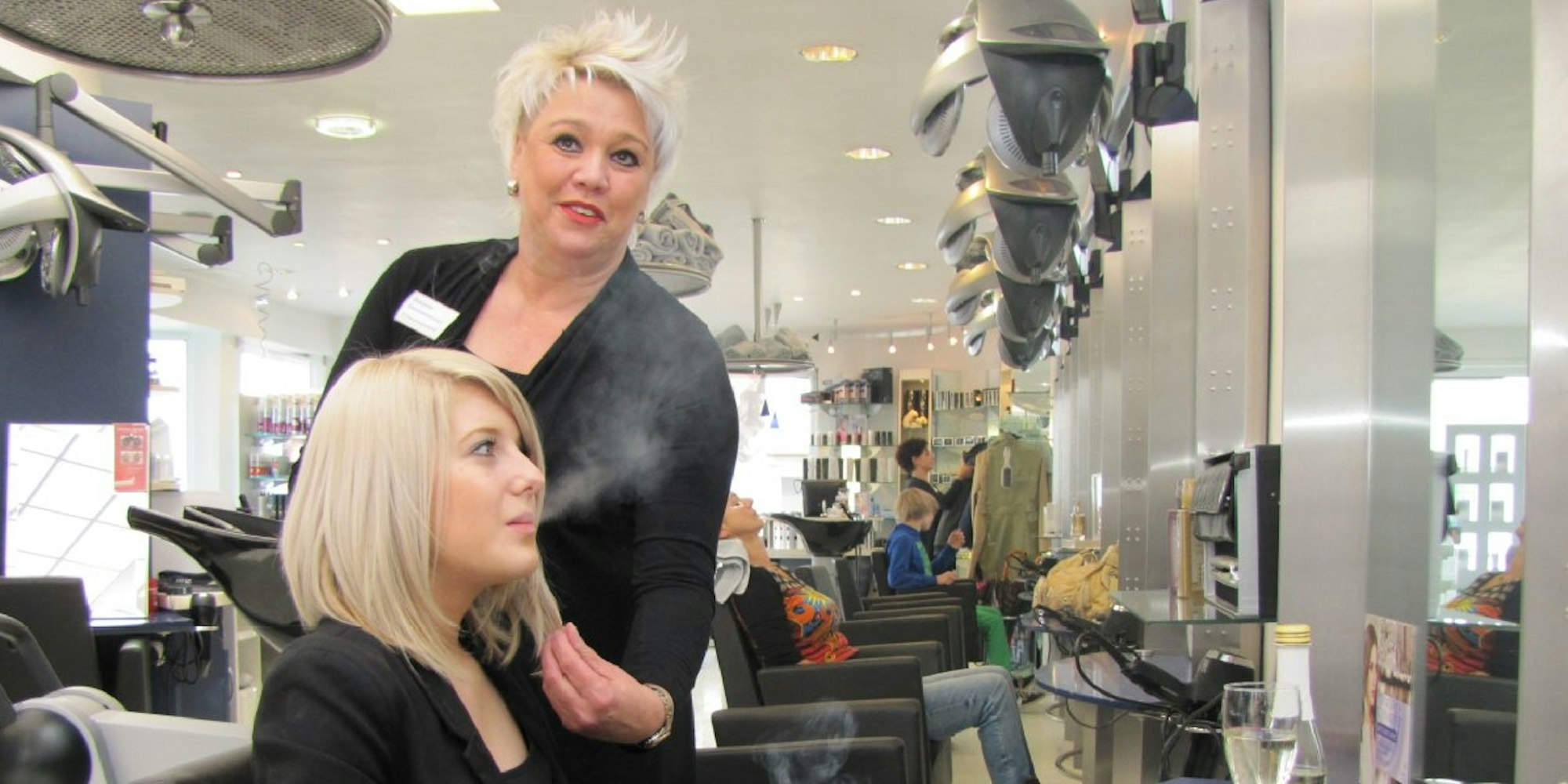Mit dem Nichtraucherschutzgesetz in NRW, das am 1. Mai in Kraft trat, hat das nur mittelbar zu tun. Während der im Vorfeld geführten Debatte waren auch einige Kunden, die sich zuvor nie beschwert hatten, auf die Idee gekommen, dass ihnen Zigarettenqualm beim Waschen, Schneiden und Fönen nicht behagt. Daniele Gerstenmeier erfüllte deren Wunsch nach einem dunstfreien Friseur-Salon. Verpflichtet war sie dazu nicht. Denn im Nichtraucherschutzgesetz kommen Gewerbebetriebe, in denen keine Speisen und Getränke angeboten werden, nicht vor. In Friseur-Salons oder in Kosmetik-Studios darf de jure munter weiter gepafft werden.