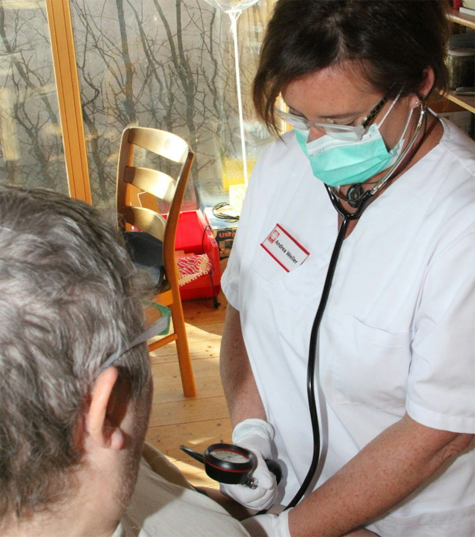 - Krankenschwester Andrea Weiler trifft deshalb strenge Vorsichtsmaßnahmen bei ihrer Arbeit mit Menschen, die zum großen Teil der Hochrisikogruppe angehören.