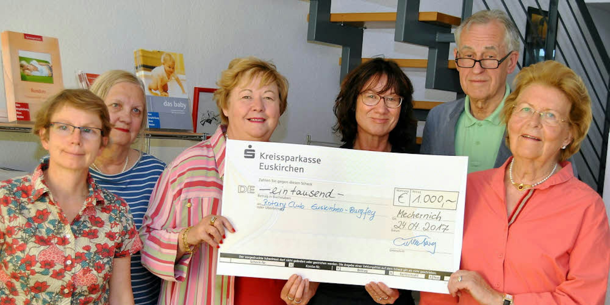 Der vom Kreis finanzierte Familienplanungsfonds des Vereins reiche „von vorne bis hinten nicht“, so Rita Gerdemann. Spenden der Bürgerstiftung der Kreissparkasse speziell für Flüchtlingsfamilien und eine 2000-Euro-Spende der Mechernich-Stiftung für Frauen aus Mechernich halfen hier weiter. Ebenso eine Spende in Höhe von 1000 Euro, die anlässlich der Vorstellung des Jahresberichtes der Mechernicher Gynäkologe Dr. Friedrich Callenberg und Ursula Fuest für den Rotary-Club Euskirchen-Burgfey überbrachten. (pp)