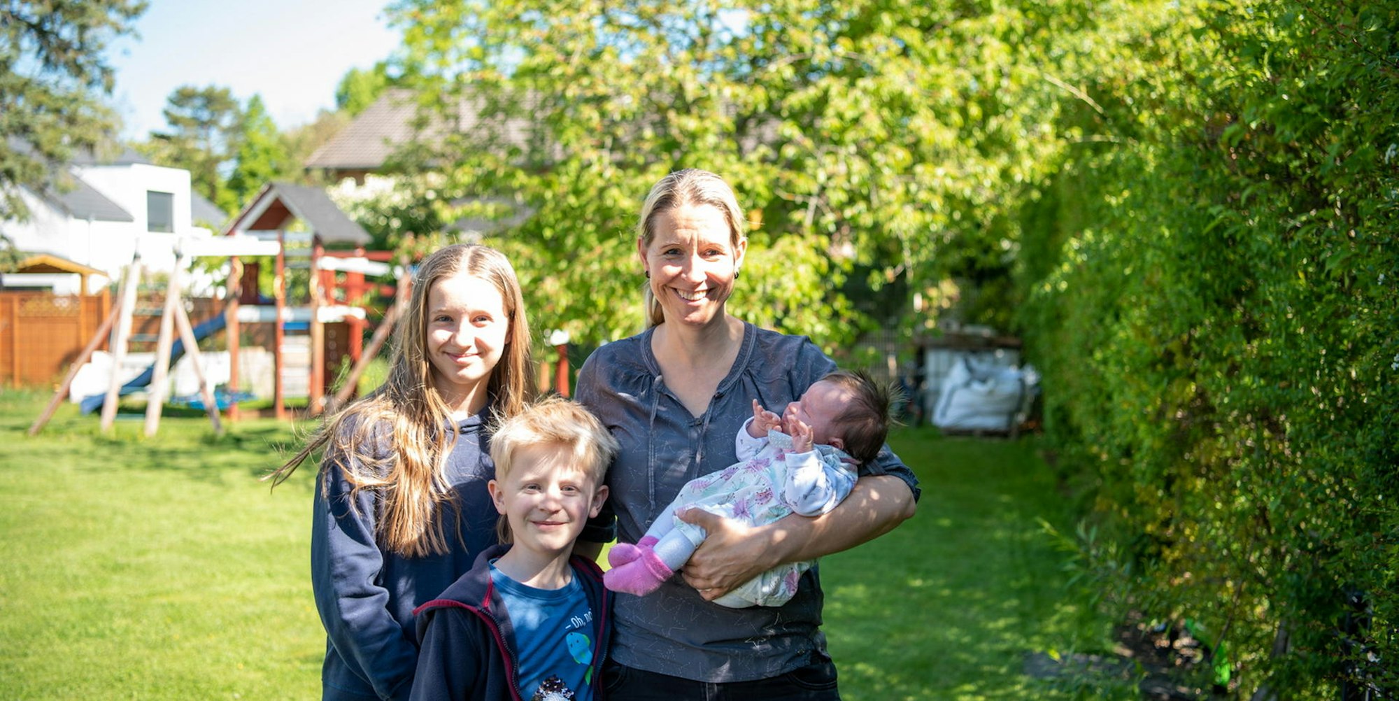 Etwas widerwillig geht der Siebenjährige zurück in sein Zimmer. Zwischen Homeschooling und Baby bleibe nur wenig Zeit für sie selbst, berichtet Philipp. Wenn die Schulkinder am Nachmittag fertig seien, drehe Rocca erst richtig auf. Aber es sei auch schön, dass die beiden Älteren nun eine so intensive Zeit mit der Kleinen erlebten. Vor allem Yara scheint in der Rolle der großen Schwester voll aufzugehen, behutsam hebt sie Rocca aus der Hängewiege und streicht ihr über den Kopf. Stolz schaut Philipp ihr zu. Das Anmelden der Kleinen beim Amt sei allerdings kompliziert gewesen, berichtet sie.