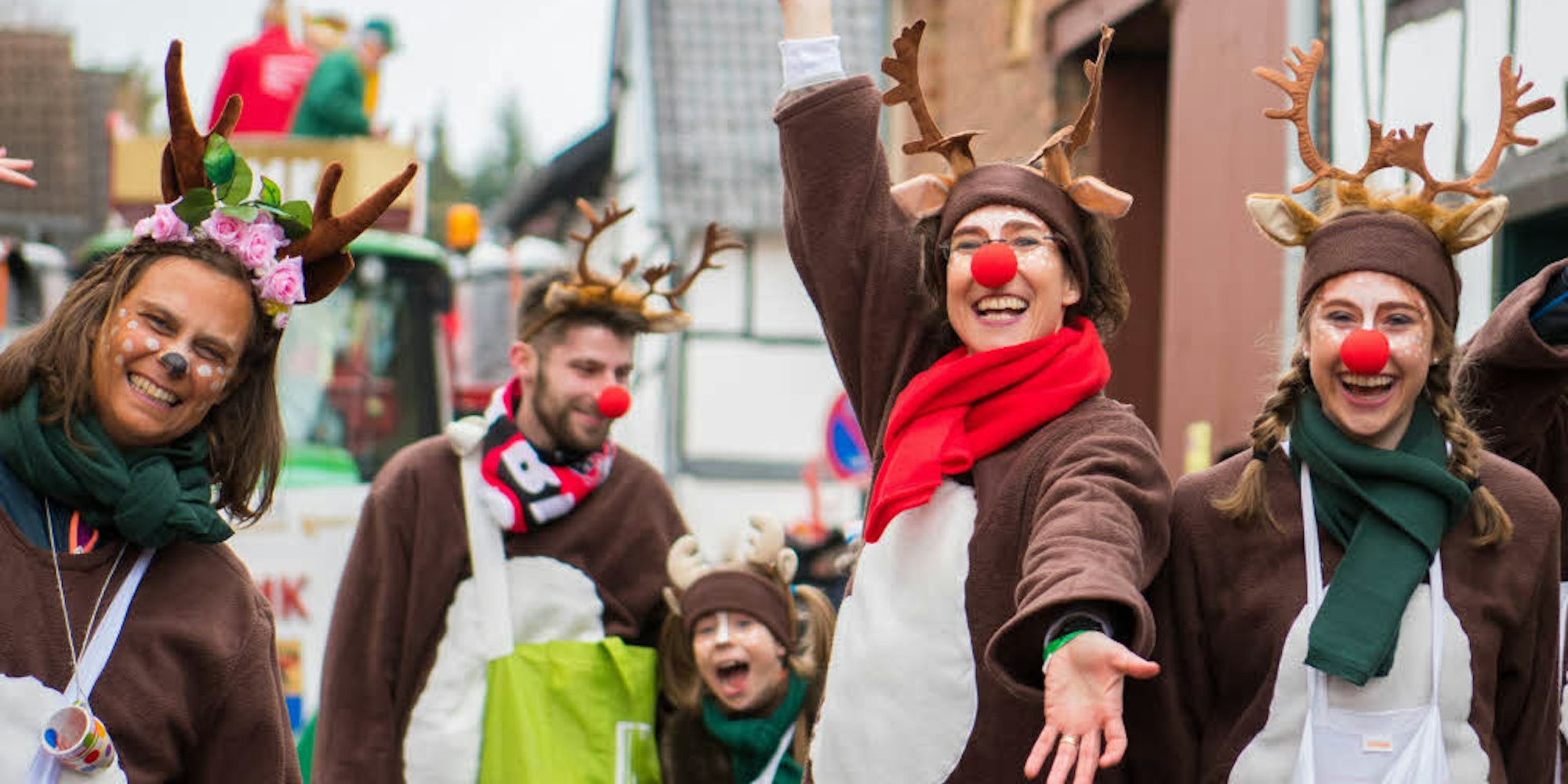 Höhepunkt der fünften Jahreszeit war der Zoch auch für die siebenjährige Emma, die mit den anderen kleinen und großen Renn-Tieren aus Kommern unterwegs war und mit ihren Seifenblasen gute Laune verteilte. „Wir machen heute auf jeden Fall Party auf der Straße“, meinte die Grundschülerin bis über beide Ohren strahlend. Keine Minute habe man morgens gezögert, ob man trotz Unwetter teilnehme, bestätigte Frank Drehsen: „Wir sind alle aus Kommern und haben uns einfach ein bisschen untergestellt, bis es losging.“