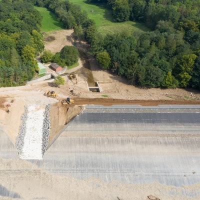 Eine große Lücke klafft im Damm der Steinbachtalsperre. Nur mehr als Rinnsal arbeitet sich der namensgebende Steinbach durch das ansonsten leere Staubecken. Das friedliche Bild erinnert kaum noch an die dramatischen Stunden am 14. Juli, als in Folge der Hochwasserflut die Steinbachtalsperre überlief und der Damm durch das abgespülte Geröll zu brechen drohte.