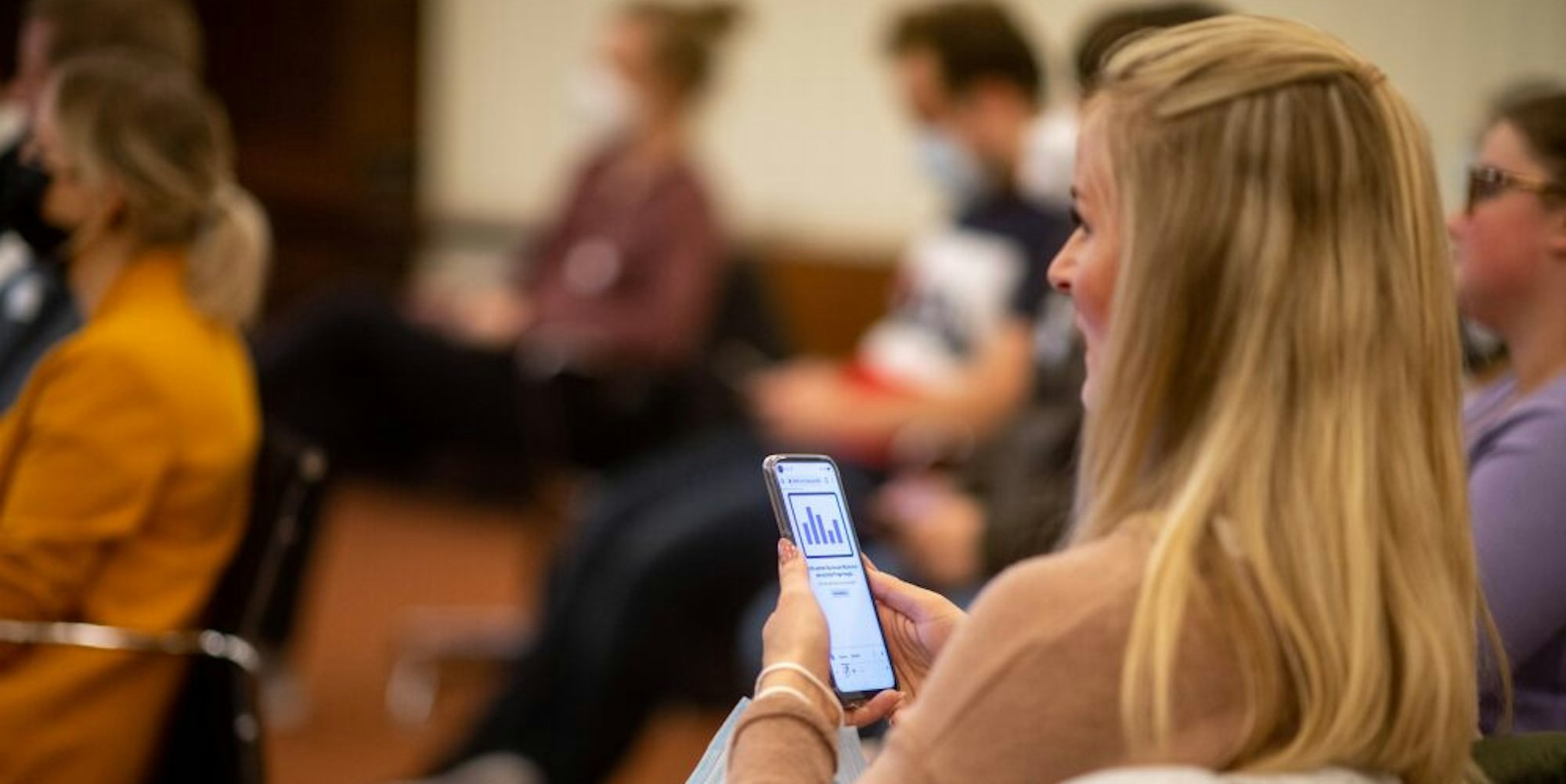 Das Handy ist aus dem Alltag der Generation Z nicht wegzudenken. Im Kreishaus wurden damit interaktive Fragen beantwortet.