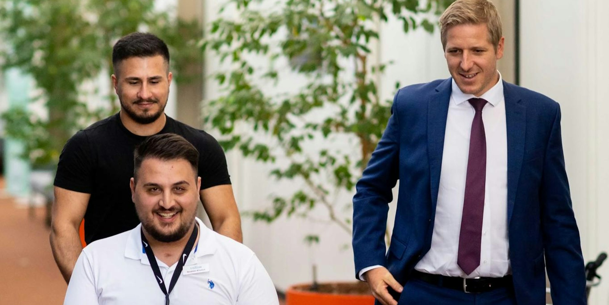 Um 8 Uhr beginnt für den Azubi der Tag in der Verwaltung. 39 Wochenstunden sieht sein Vertrag vor. Ursprünglich hatte Khaled das Ziel, mit 25 Jahren wieder selbstständig laufen zu können. Doch er habe lernen müssen, dass im Leben nicht alles nach Plan läuft „Ich werde das schaffen. Ich werde nach meinen Stunden in der Kreisverwaltung weiter zur Reha fahren.“ Da sind sie wieder: der Lebensmut und der starke Wille.