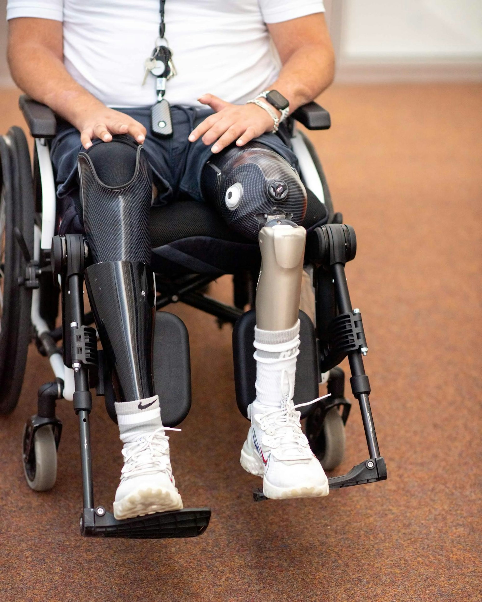 Nicht zu vergessen der Humor, mit dem er seine Situation meistert. Fragt ihn etwa jemand, ob er immer noch dieselben Prothesen trage, antwortet der 28-Jährige trocken: „Nachwachsen kann da nichts mehr, also Ja.“ Und wie es sich für einen jungen Mann gehört, trägt er moderne Sneaker an den Prothesen. „Ich könnte Geld sparen, wenn ich mir Kinderschuhe kaufen würde, das würde aber aufgrund der Körperrelation komisch aussehen“, scherzt Khaled.